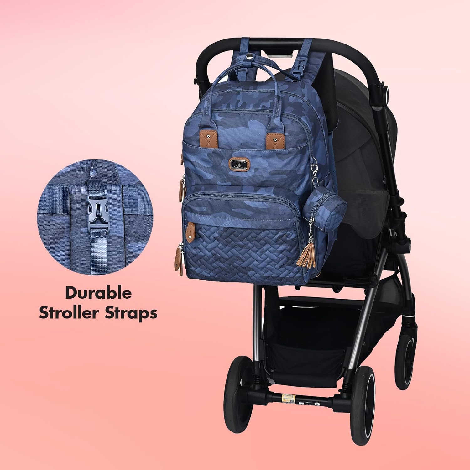 - Pacifier Case & Portable Changing Pad: The removable pacifier pod can hold two pacifiers to keep them readily available and clean; The D-shaped ring allows you to quickly and easily install the pacifier holder or other essentials like diaper bag dispenser, small accessories, etc; Also comes with a travel changing mat with diaper pocket & wipes pocket as well as a momβs pockets with a wrist strap for quick, on-the-go changes