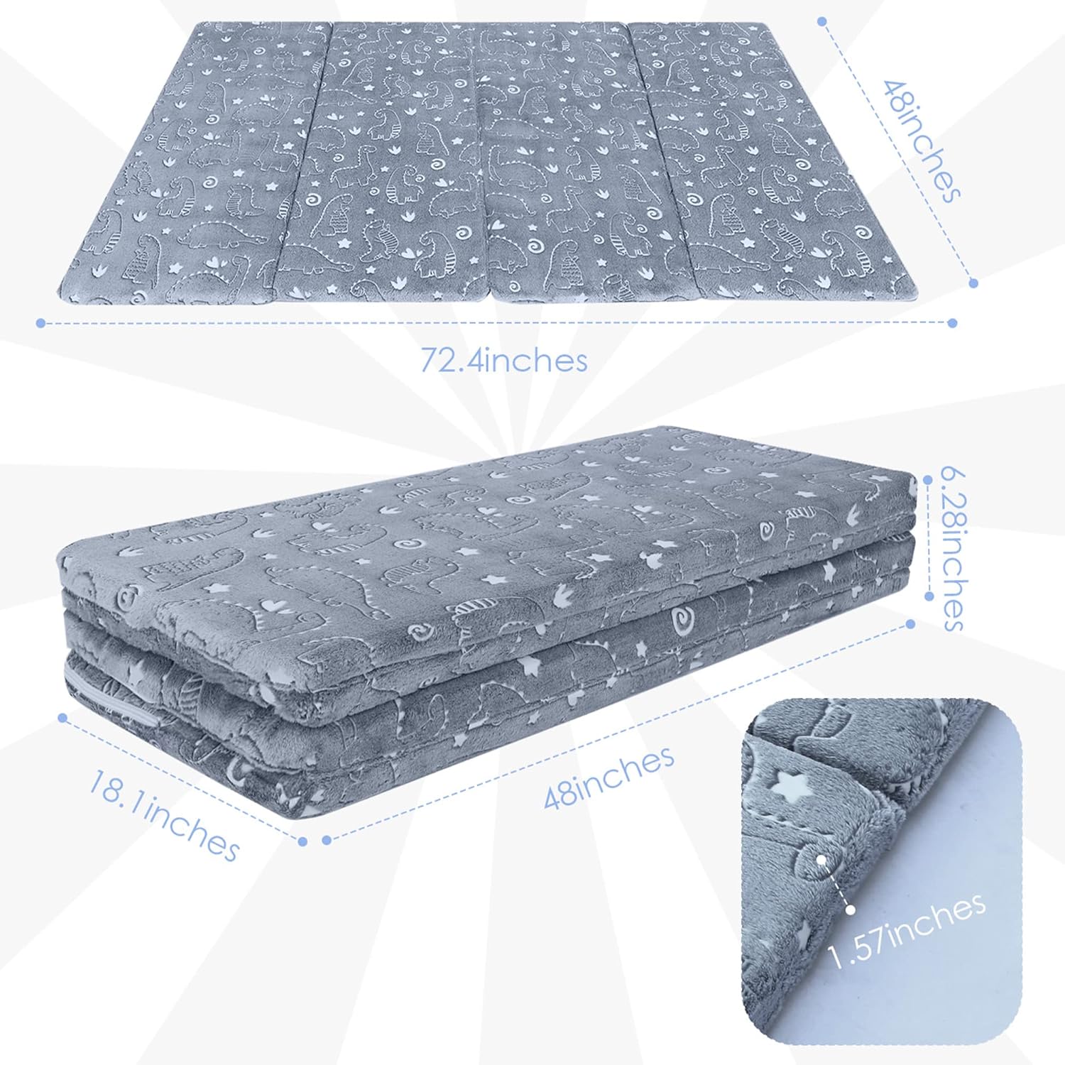 - Glow in the Dark: The glowing patterns on the foldable play mat help stimulate children's senses and promote cognitive development. Padded kid's floor futon mat glows in the dark, so the child futon is handy for use at night
