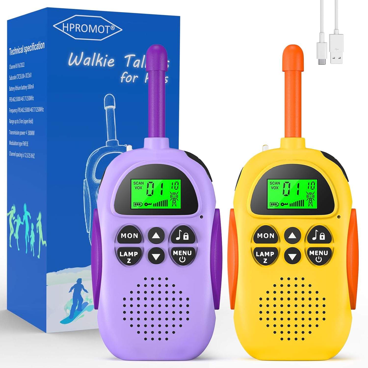 - Rechargeable Walkie Talkie 2 Pack:Hpromot Kids Walkie Talkies Rechargeable Has A Built-In Lithium Polymer Battery That is Quick to Charge and Convenient to Save Time. No Need to Pay for Additional 3a Batteries, More Economical and Environmentally Friendly. Colourful Colours to Show Off Your Child'S Lively and Cheerful Personality.