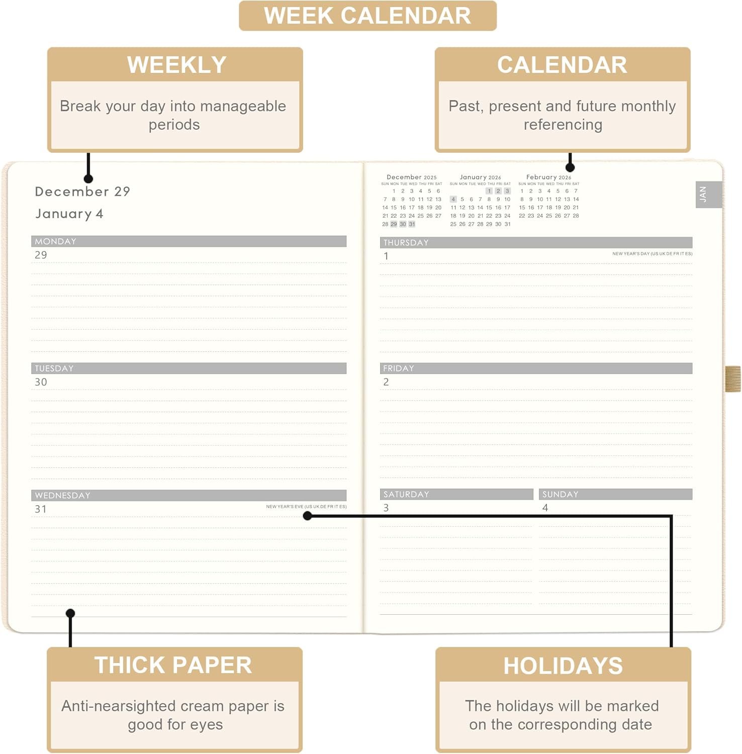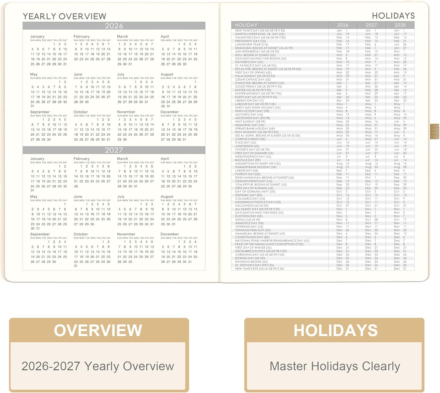 - β¨ Durable soft leather cover, excellent texture. 2026-2028 yearly holidays lets you master the holidays clearly. The 2025-2026 planner offers unruled monthly pages/ruled weekly layouts for detailed planning.