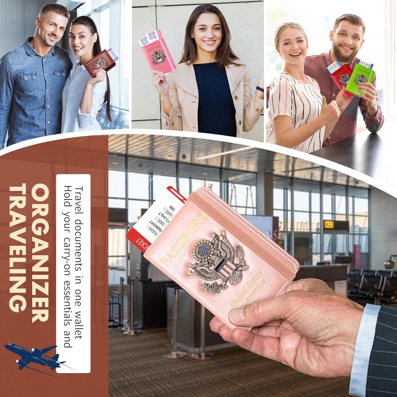 - ★【RFID blocking -travel wallet】RFID Passport holder case is made of Faux Leather and RFID-blocking shield materials. RFID Blocking security feature ensures that your personal information remains safe from potential theft while you travel.Passport holder for family can put necessary things, makes travel and business trips a breeze.The emblem on the front is cool,If we get compliment for trip,of course we need to spread the song all over America.