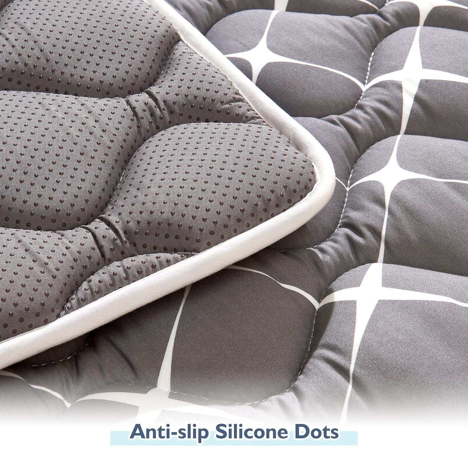 - ăNon-slip, thick and comfortă The back side of the 50x50 play mat for made of anti-slip material, and the bottom backing is silicone dots. It is thicker than other play mat. It prevents babies from causing pain when they fall or bump.