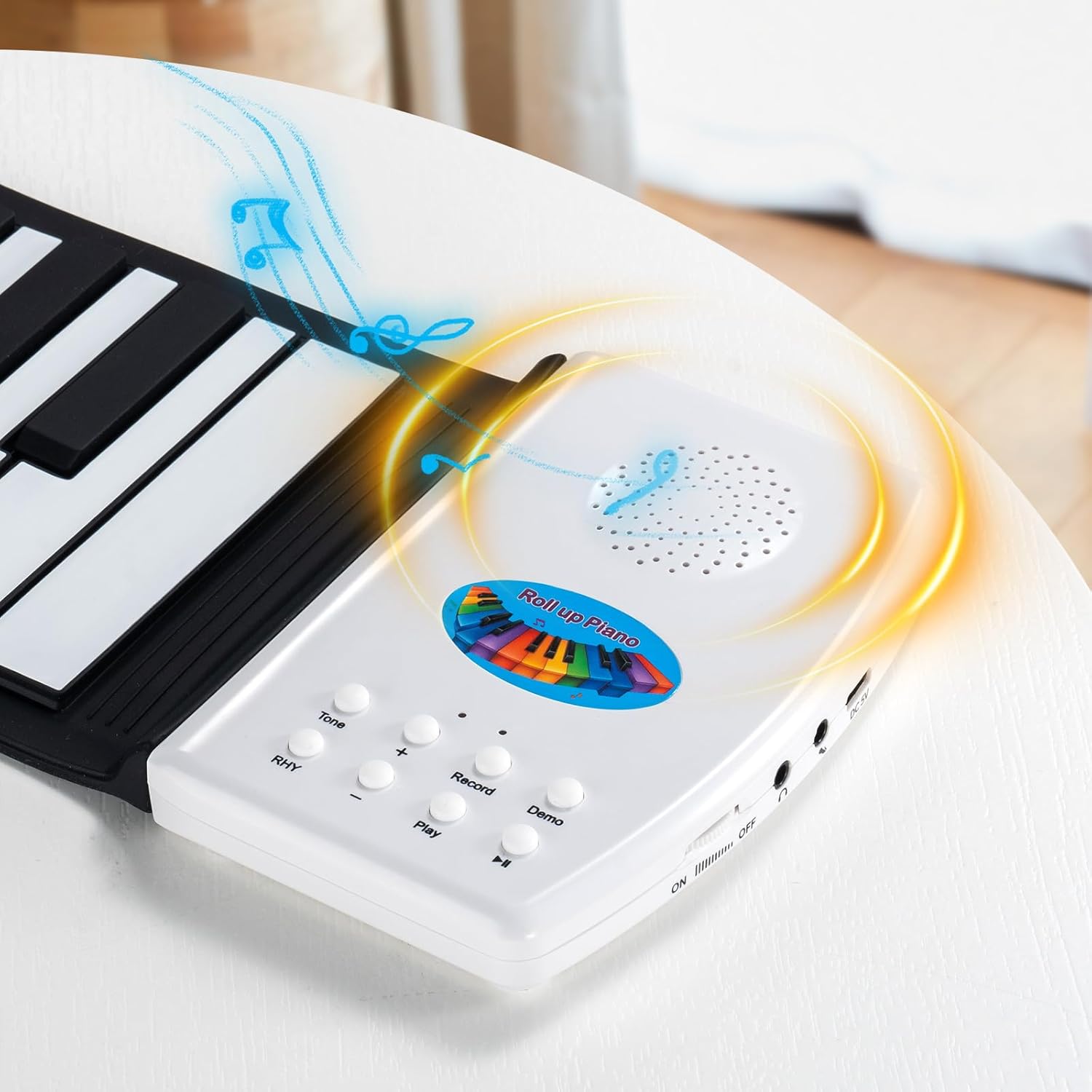 - ROLL UP DESIGN & PORTABLE & RECHARGEABLE --- The soft piano mat is portable and flexible. Easily unfold when playing, roll it back into the box or backpack after playing, it saves space and is easy to store. Easy to carry, you can take it anywhere and start playing with friends/family. Built-in rechargeable battery, you can charge it anytime.