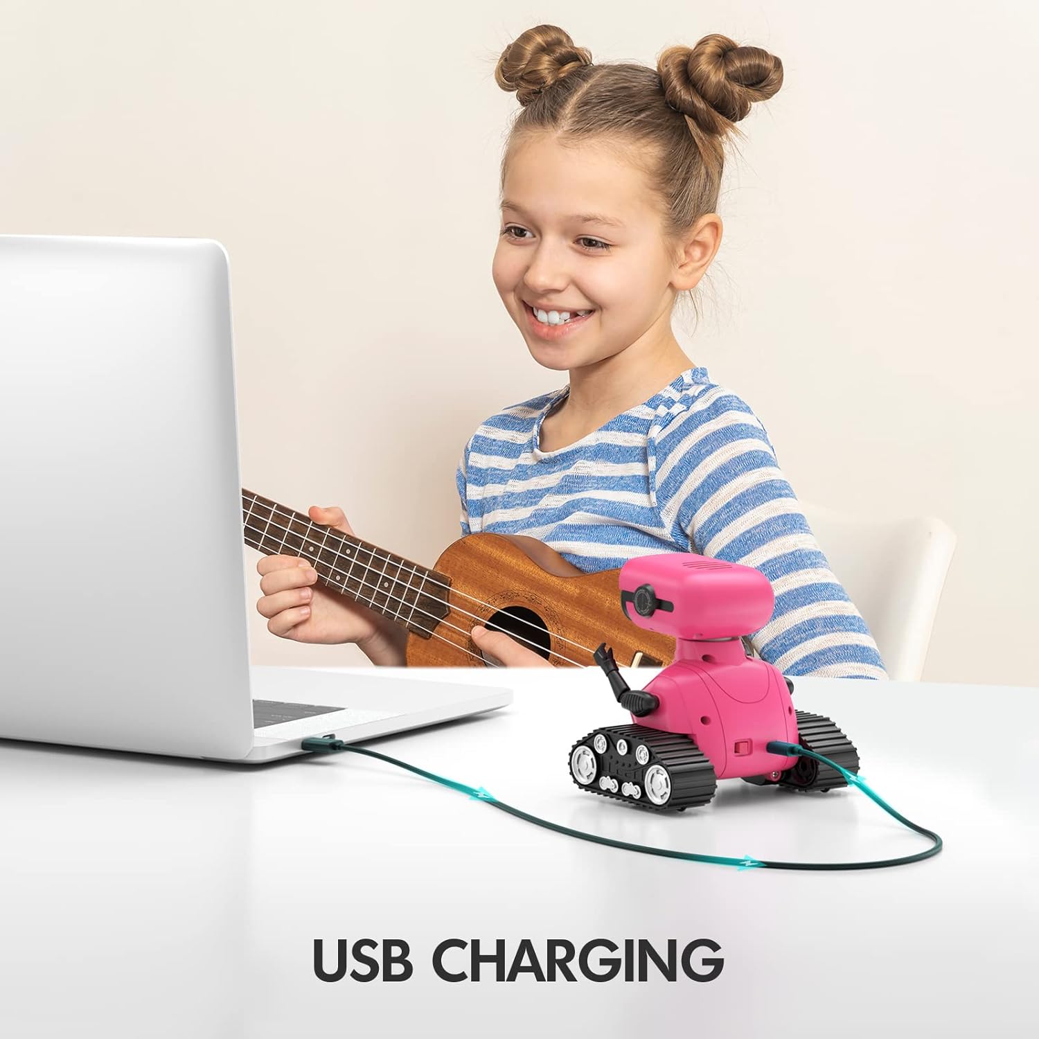 ALLCELE Robot Toys, Rechargeable RC Robots for Kids Boys, Remote Control Toy with Music and LED Eyes, Gift for Children Age 3 Years and Up - Rose Red