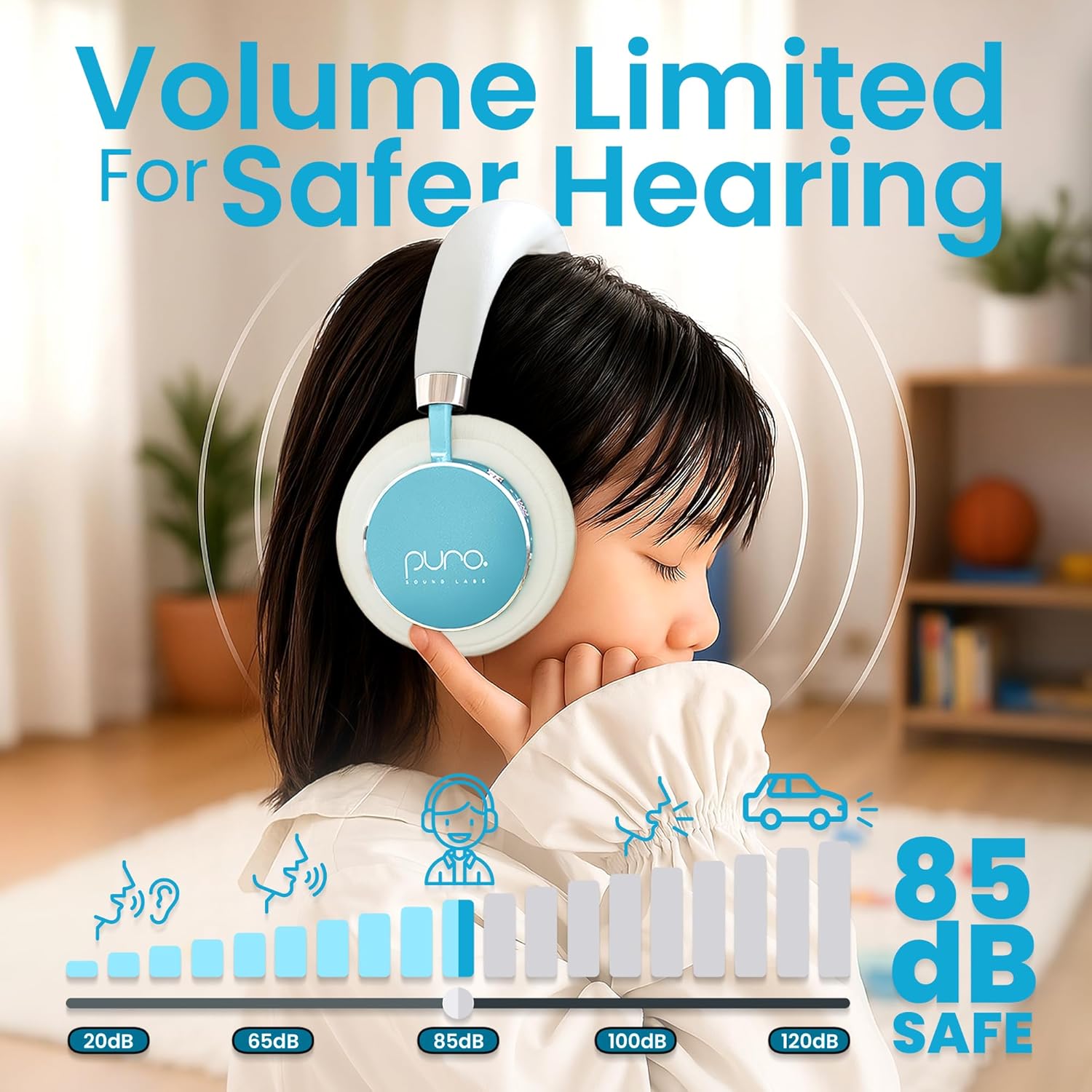 - STUDIO-GRADE AUDIO PERFORMANCE: Experience audio with our Puro Balanced Response Curve that offers clear vocals and deep bass, giving your child a great sound experience with kids Bluetooth headphones, all within an 85dB listening range.