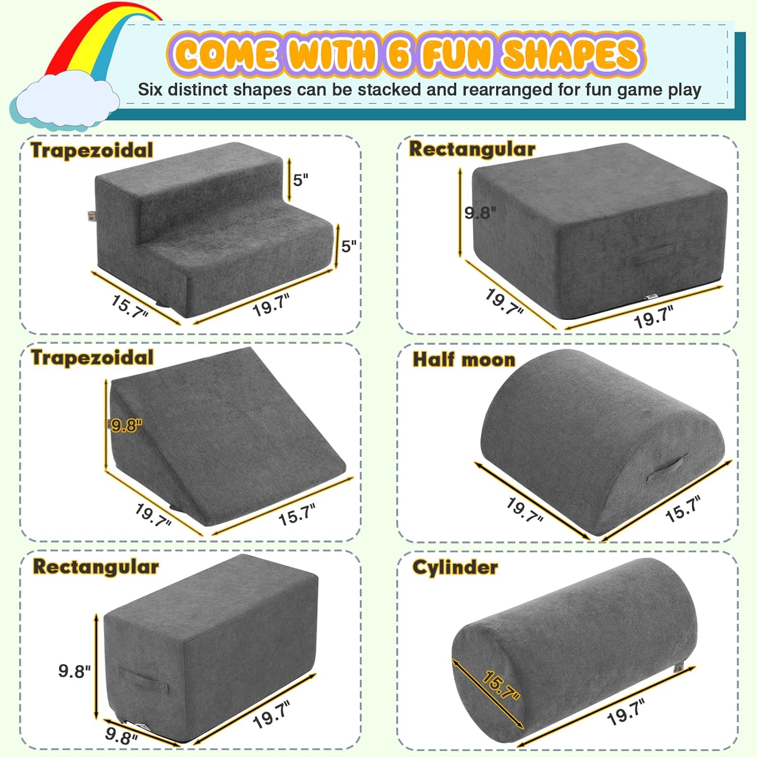 - 【SAFE AND GUARANTEED】: Jela foam climbing blocks are CertiPUR-US certified, non-toxic, environmentally friendly, and odorless fabric with OKEK-TEX approved. The soft play climbing for toddlers with hidden zippers are designed to avoid scratching children's soft skin. We focus on offering kids a reassuring environment to play, the product is built without hard structure or smooth edges, to prevent kids from bumping.
