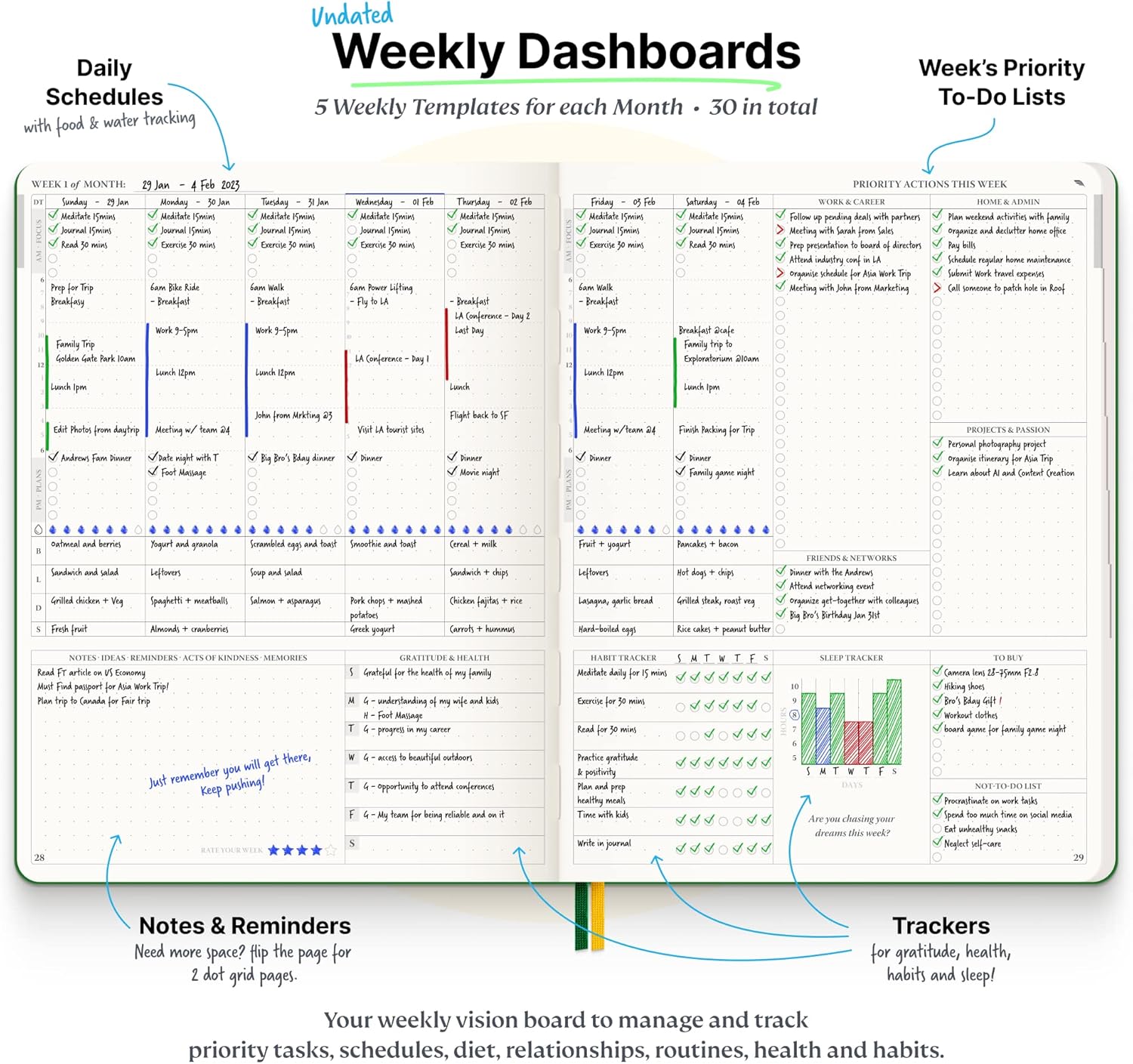 - Smash Your Goals & Prioritize Wellness: 5 Roles & Goals templates for purposeful goal setting. Reading, Bucket lists, & Self Care journal. AM/PM Routines, habit, nutrition, fitness, and health trackers included. Perfect planners 2024-2025 for women and men