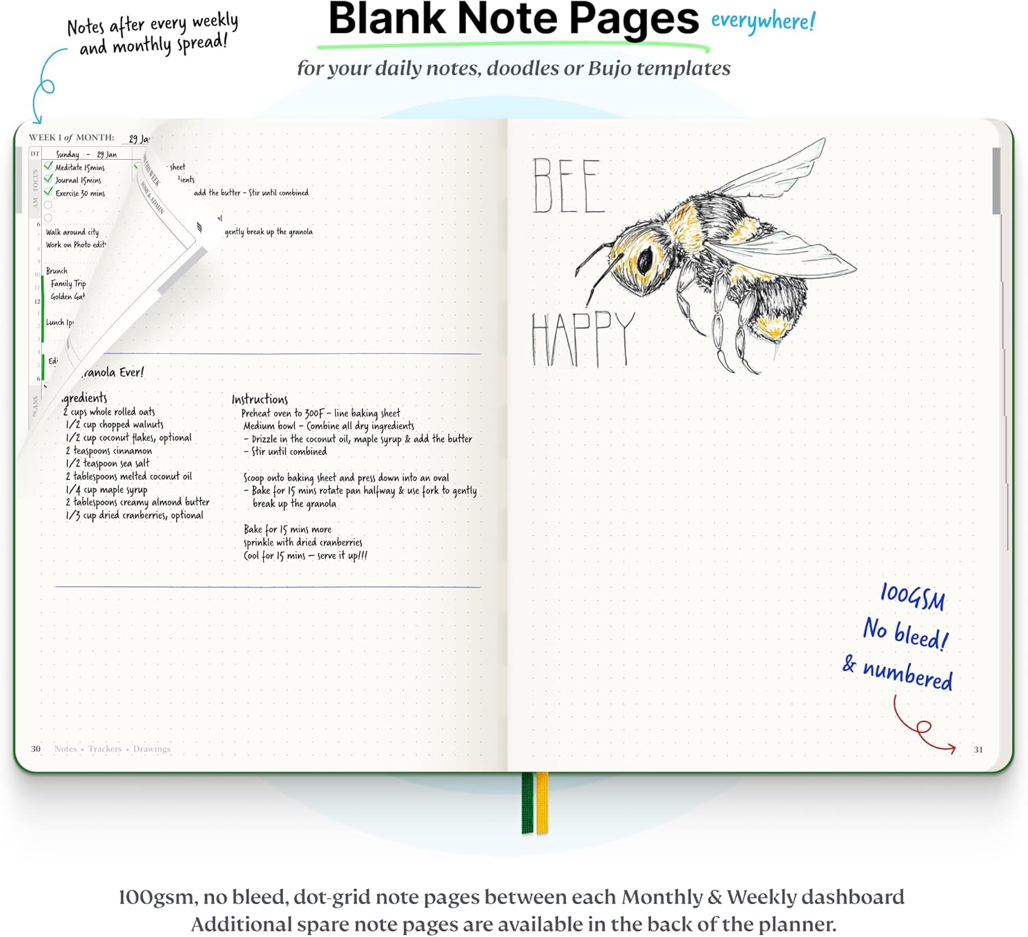 - Planner + Notebook All in 1: Annual Calendar, Notes Index, Monthly & Weekly to do list planner dashboards, 93 numbered dotted note pages for expanded task lists, notes, or sketches. All-in-one business planner, notebook and life organizer