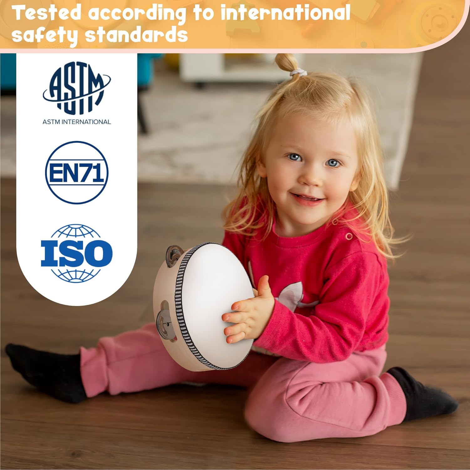 - Inspire budding musicians: featuring 1 tambourine, 2 castanets, 2 hand bells, 1 flute, 1 wood sounder with stick, 2 cymbals, 2 sleigh bells, 1 bell stick and 1 triangle with a striker, our baby musical toys are a way to introduce kids to music