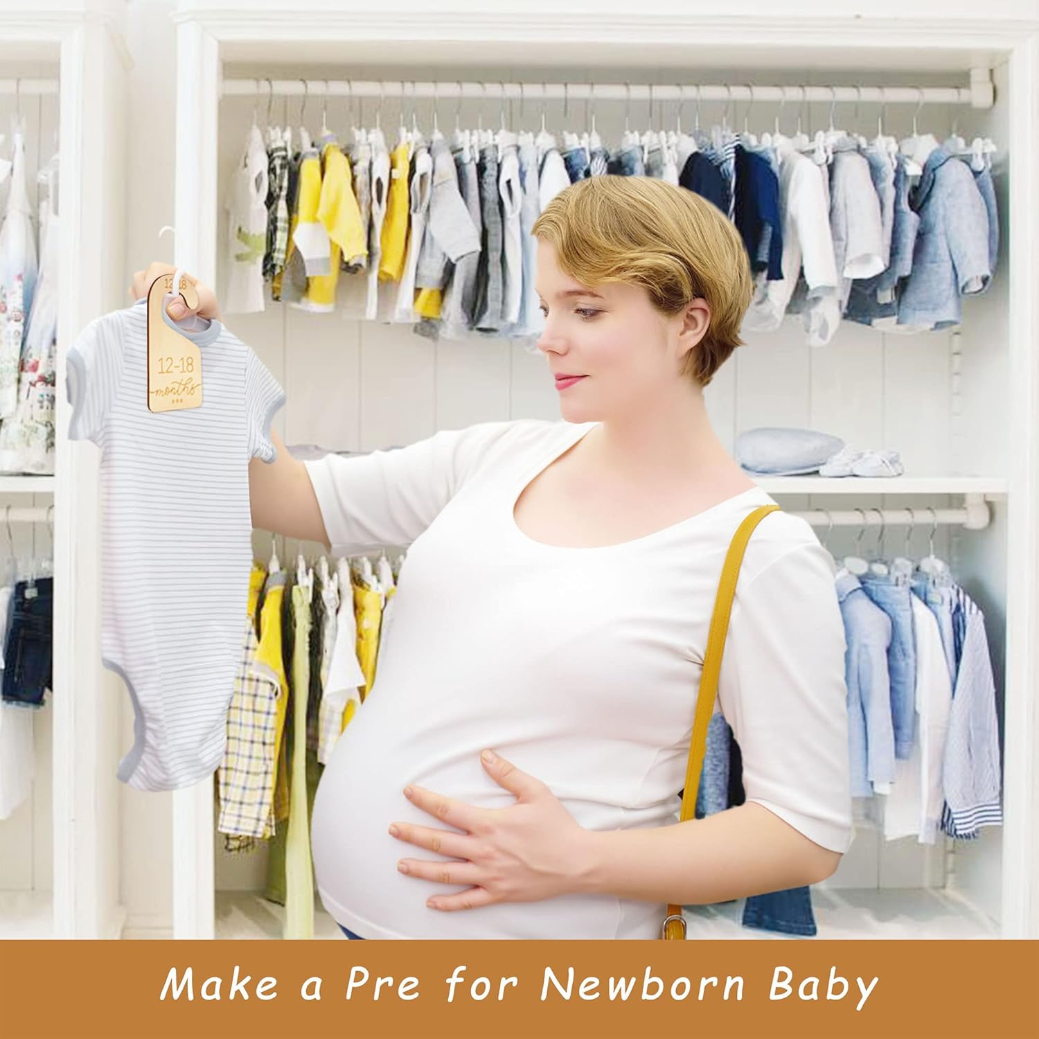 Baby Closet Dividers for Clothes Organizer - Set of 8 Beautiful Wooden Double-Sided Baby Clothes Size Organizer from Newborn to 24 Months for Nursery Decor