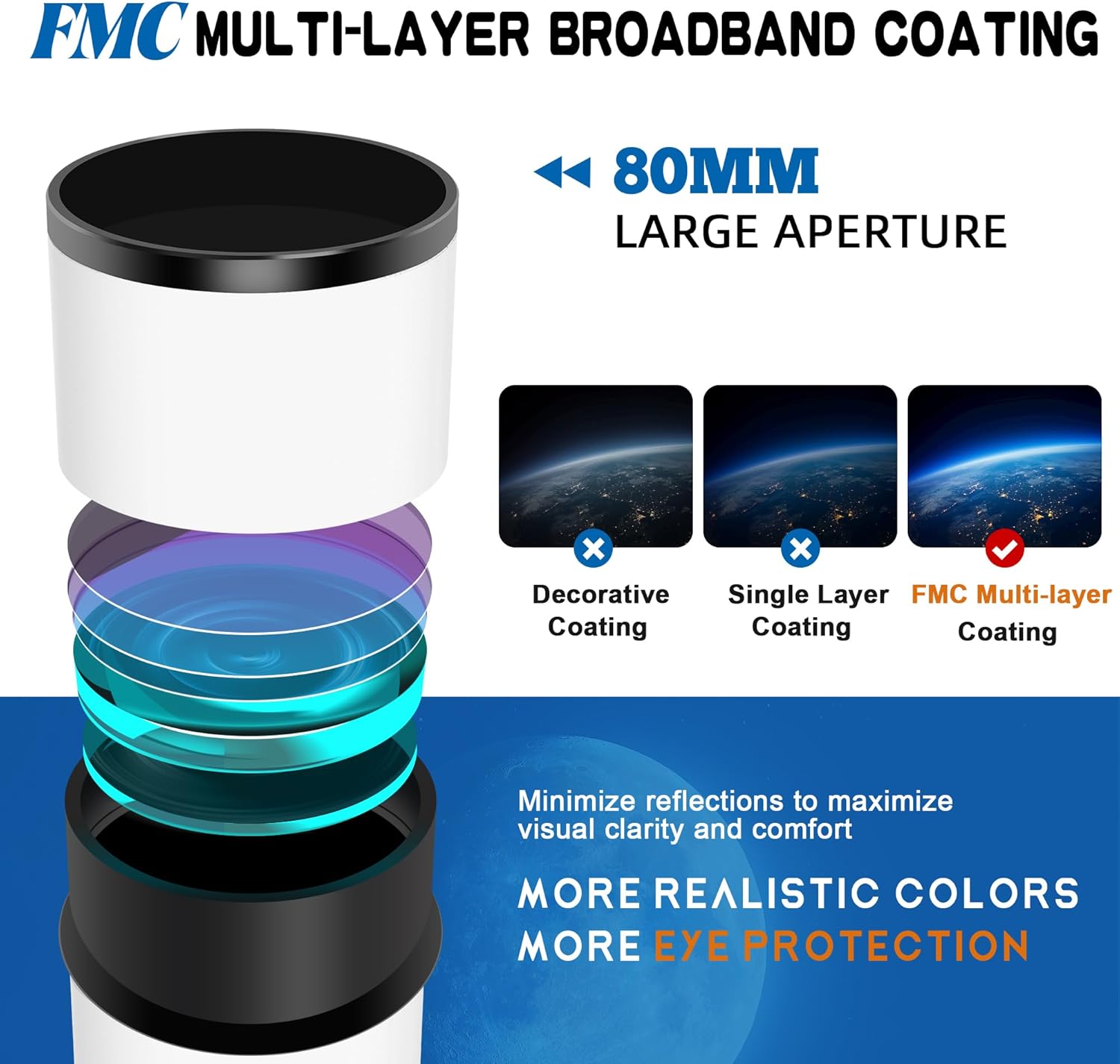 - Premium Optical System - Dianfan 80600 astronomical telescope features precision optical lenses with FMC multi-layer broadband high-transmission coating for bright, sharp, and true-to-life images,making it ideal for stargazing and observing celestial details