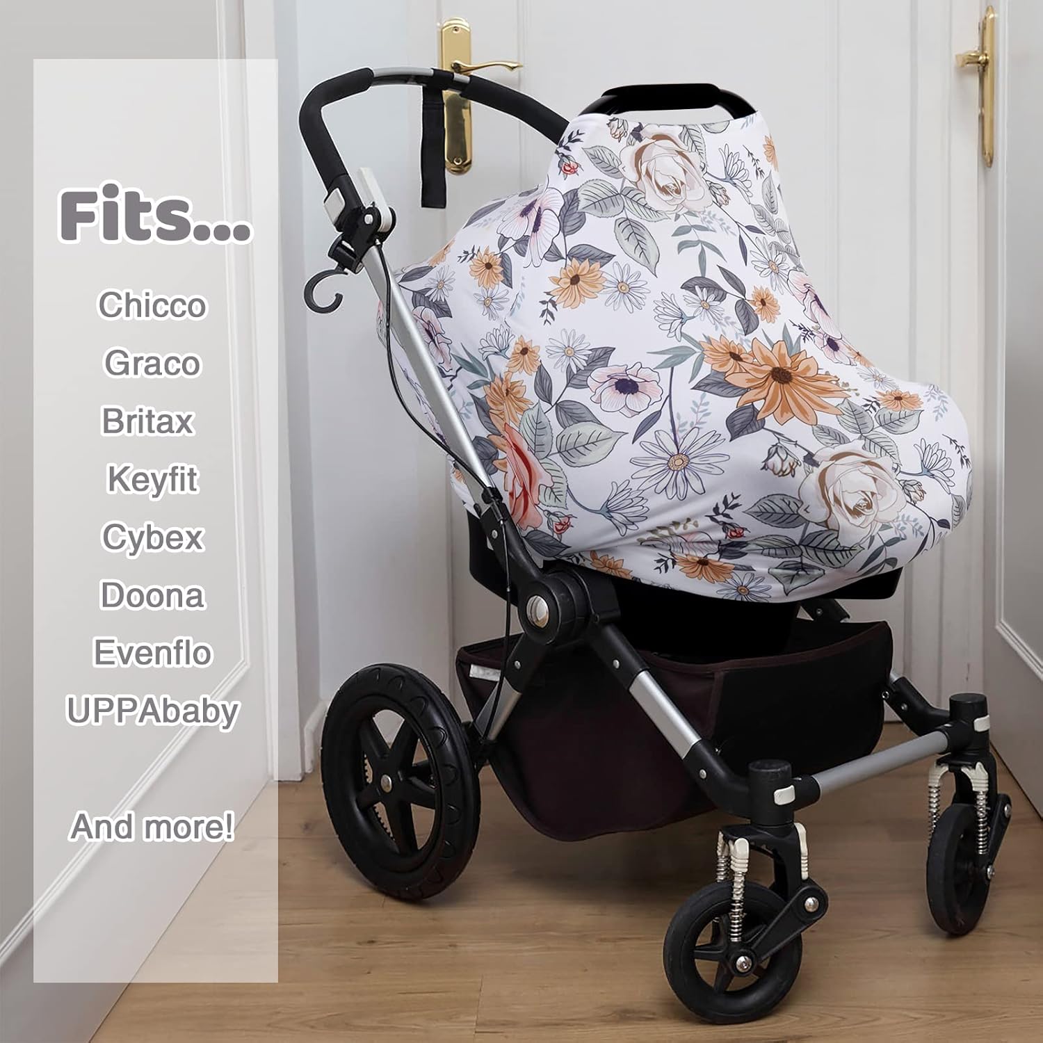 Rquite All-in-1 Car Seat Cover Baby, Carseat Covers for Girl Boy, Stretchy Soft Infant Car Seat Cover, Multi-use Baby Carrier Cover, Car Seat Canopy, Stroller Sun Shade, Nursing Breastfeeding Cover