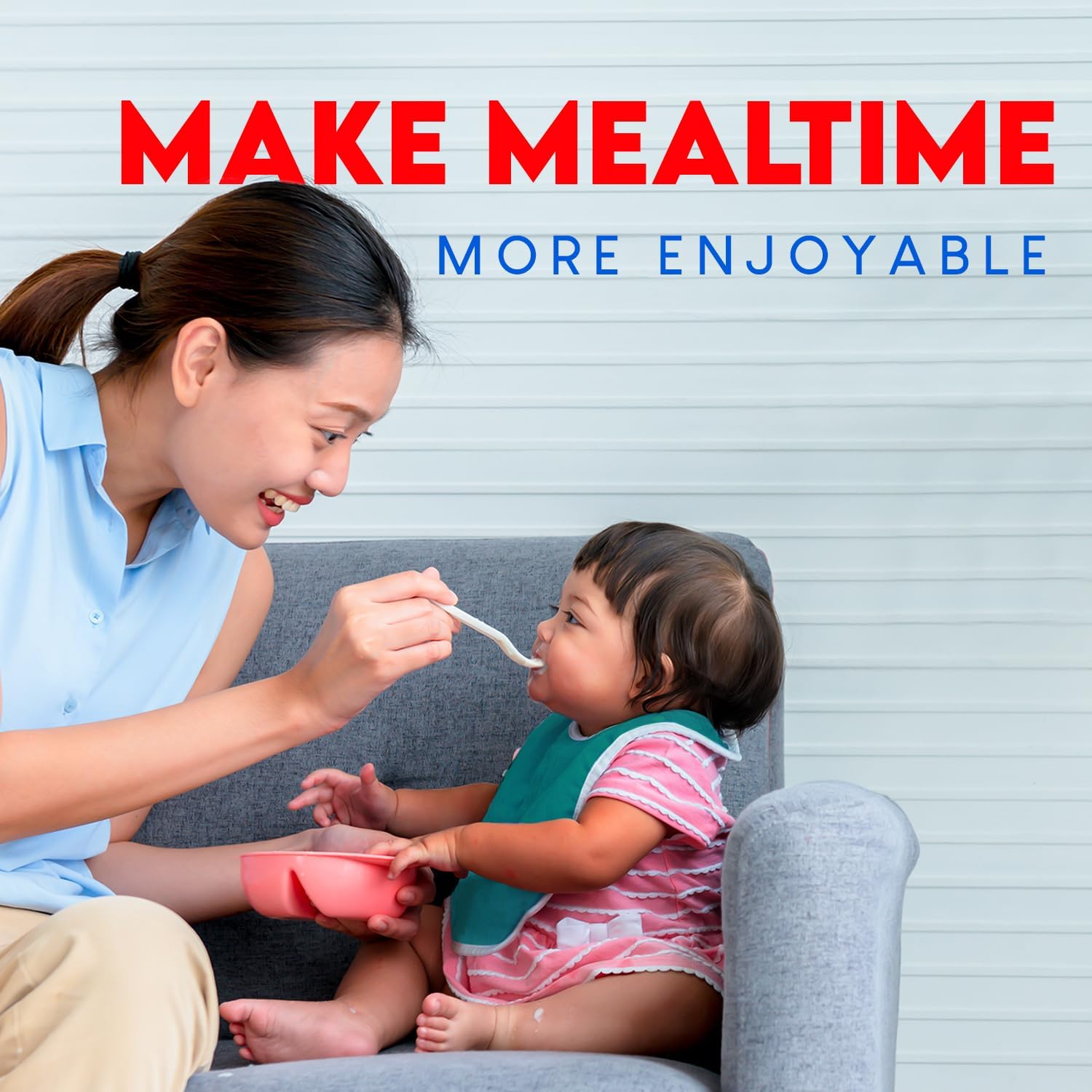 - EXTRA WIDE COVERAGE KEEPS SPILLS OFF - Because even though there is no pocket, Toppy Toddler bibs are longer and wider than most. So clothes stay clean. Although some bibs have pockets, most of the time food still finds its way to the floor or lap area. And as good as crumb catchers are, this bib gives you 20 percent more coverage with an impressive 13" x 18" surface area. Almost 12" from the neck down. That's 235 square inches of total protection extending to the lap area too.