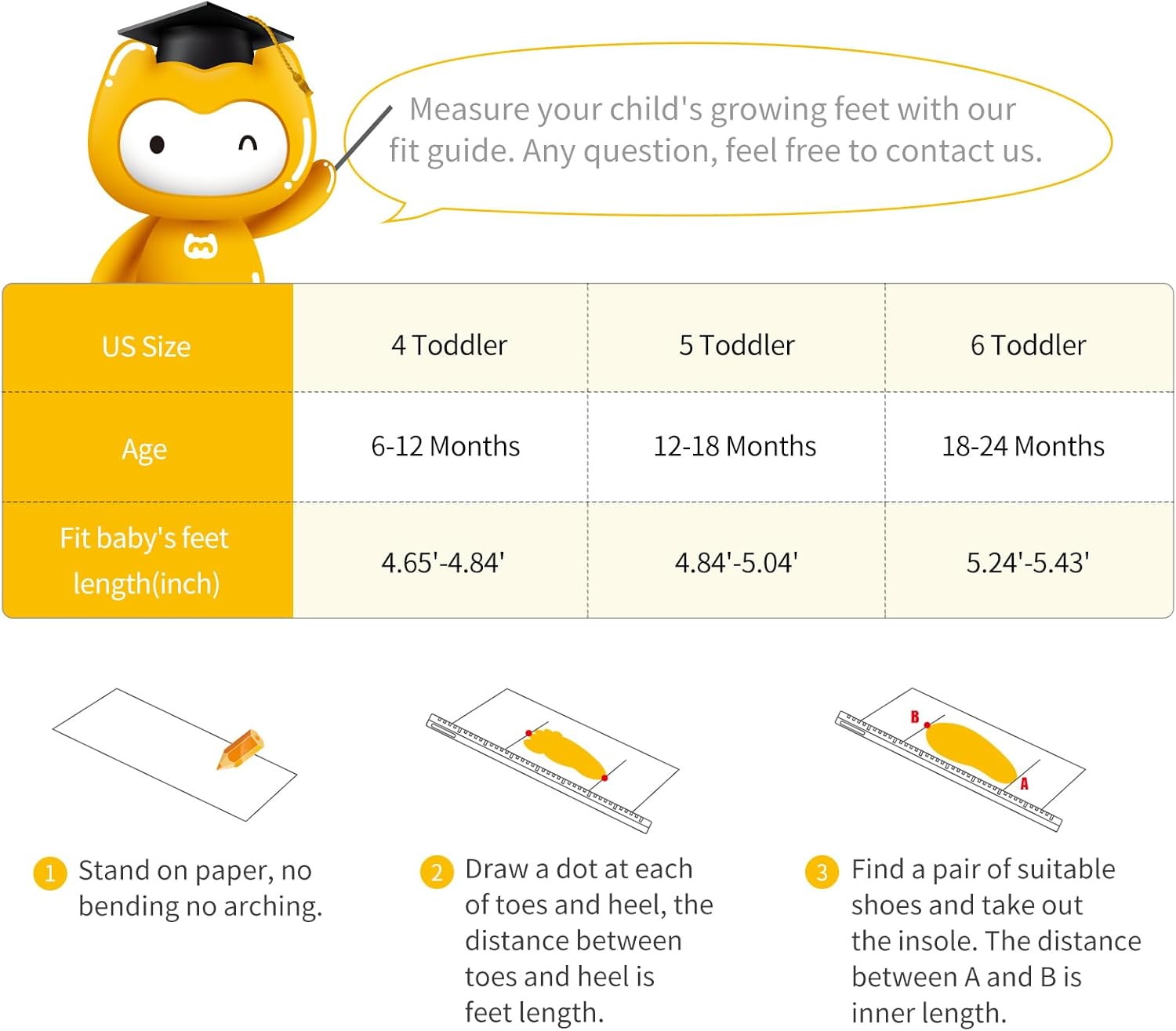 - Non Slip: A full-length rubber sole of the baby first step shoes gives durable traction to keep your baby from slipping, they can run around without worry