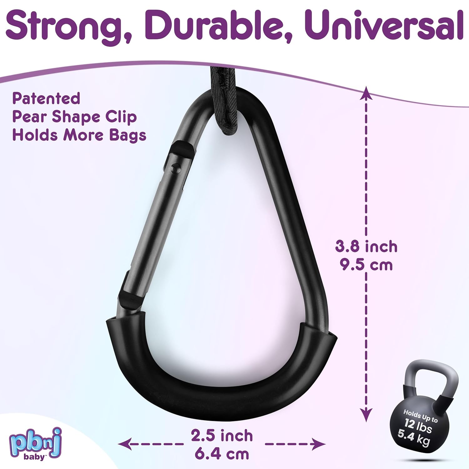 Stroller Hooks for Hanging Diaper Bags - Mommy Stroller Clip and Stroller Accessories Organizer Hook - Large Carabiner Clips for Mom Purse Shopping Grocery Bag and Accessory - (2 Pack) (Clips)