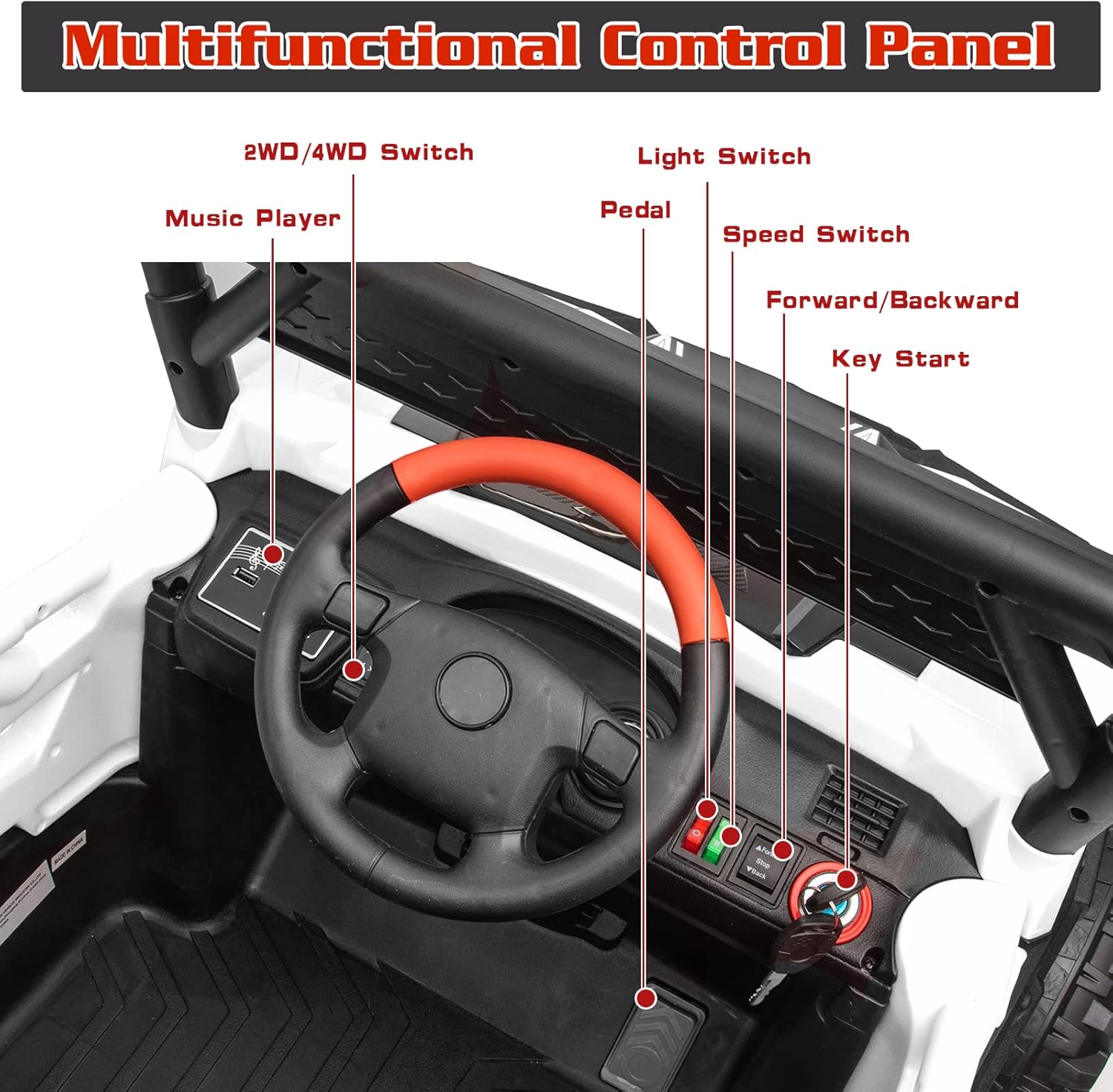 - 2 DRIVING MODES- Your kids can manually drive the ride on car by steering wheel and pedal to enjoy an independent off-road adventure! If your kid is too young to drive, the 2.8GHz parent remote control mode allow you to control the car to avoid potential dangers.