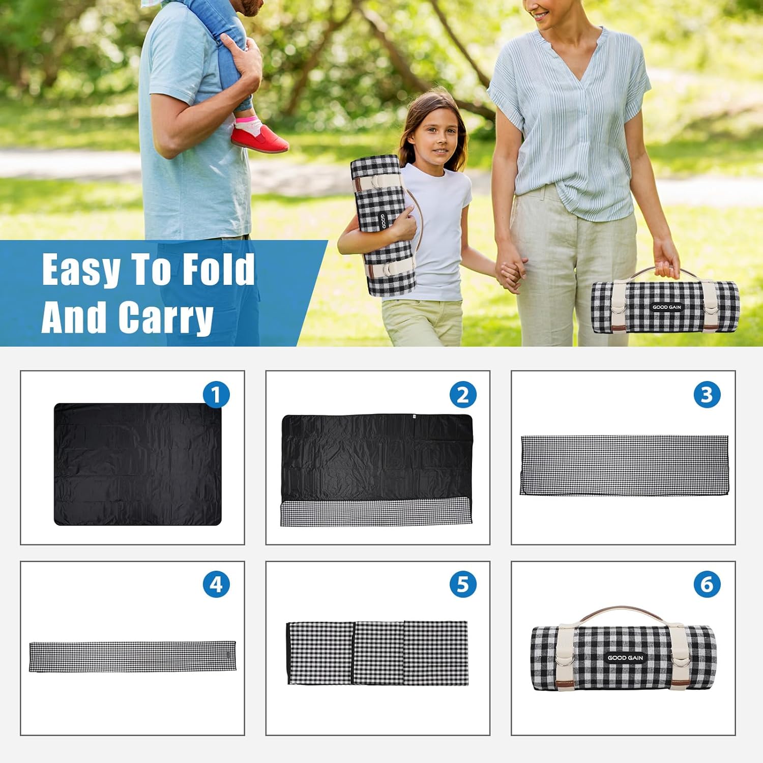 - COMFORTABLE LARGE HANDLE STRAPS - The handle strap with double ring buckle is convenient to carry, and can easily fold and fix the picnic mat,saving a lot of space on the travel.