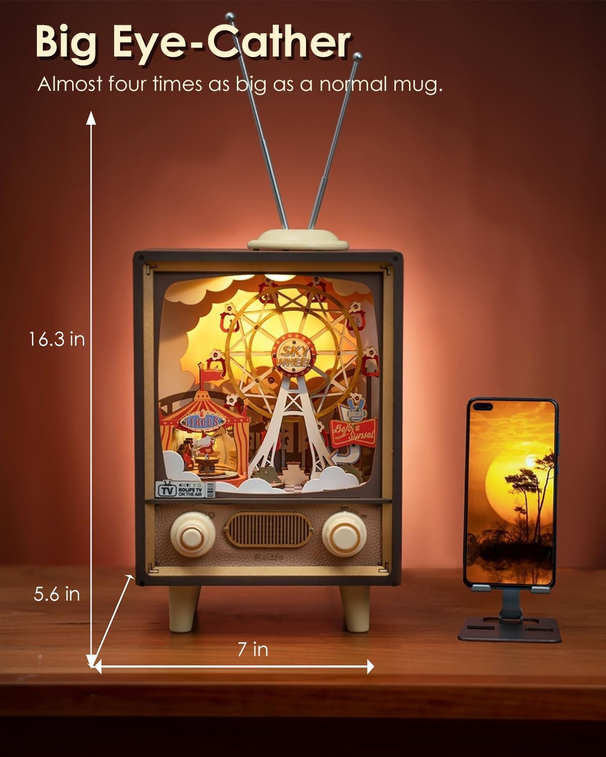 Rolife 3D Wooden Puzzles for Adults DIY Book Nook Kit 16" Ferris Wheel Music Box Model Building Set with LED Crafts for Adults Gifts for Girls Boys (Sunset Carnival)