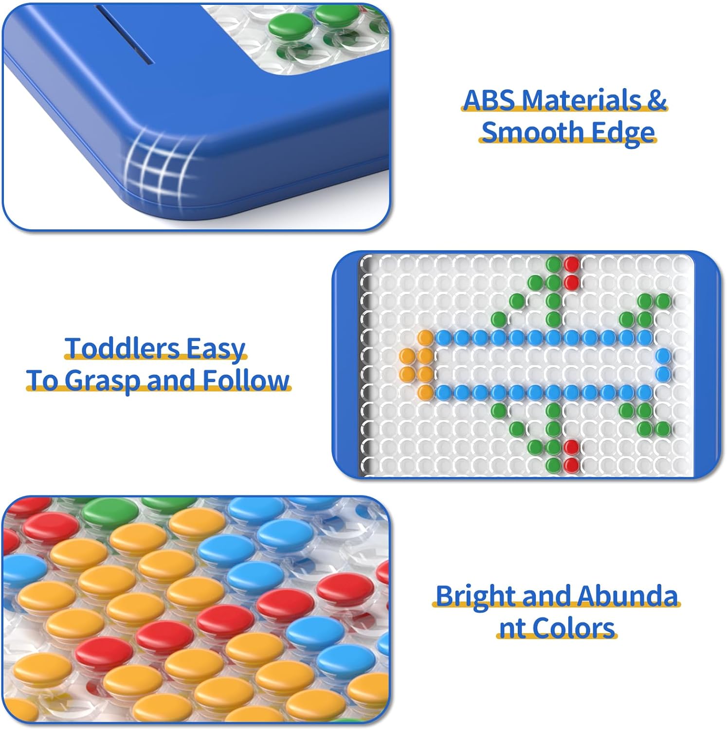 - 【Well Designed Non-toxic and Durable】Magnetic dot drawing board is made of high quality kids friendly ABS plastic material. The rounded corners of the magnetic drawing board are smooth to take care of little ones' small hands. The magnetic beans are sealed inside a clear acrylic panel, the closed magnetic dot drawing board can effectively avoid the risk of toddlers swallowing.