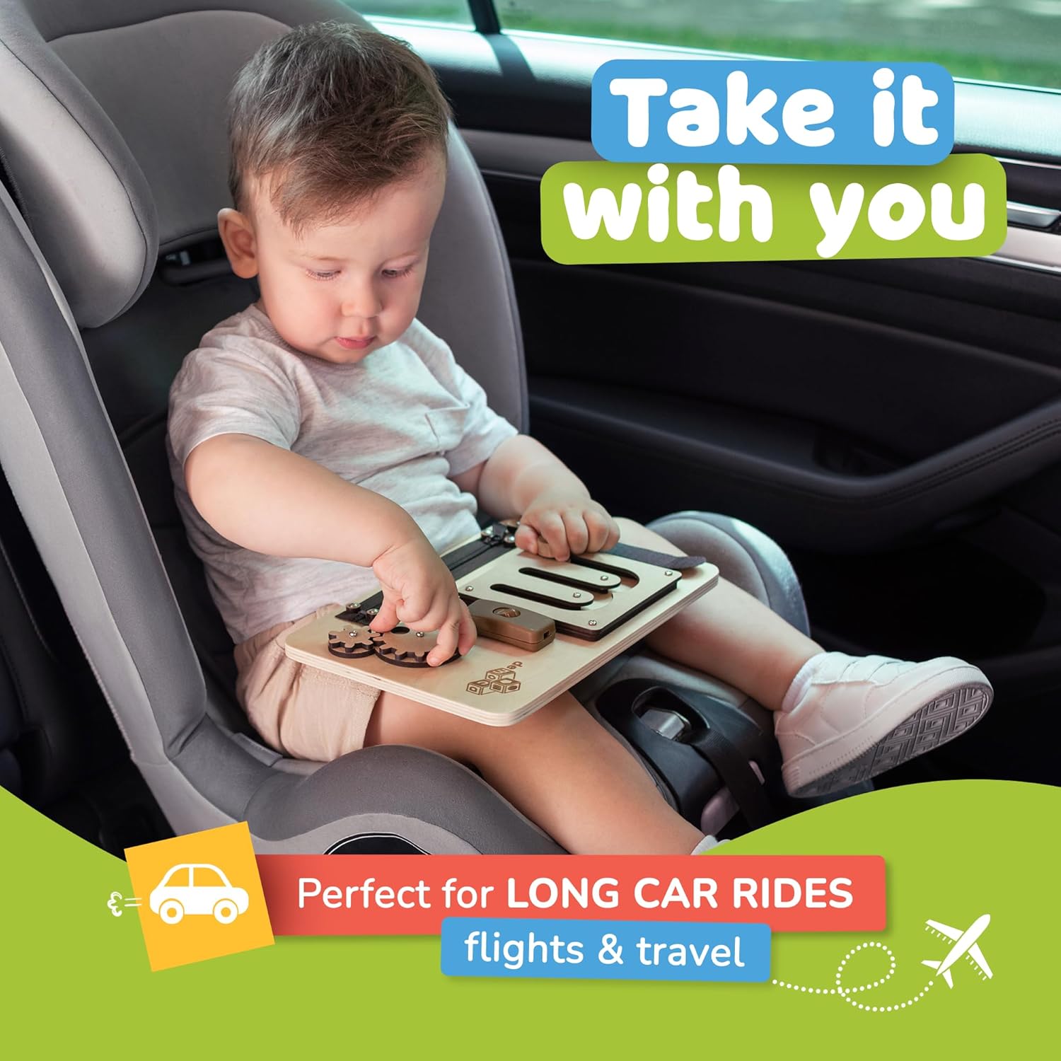 - Montessori Busy Board for 1 Year Old β Our sensory board for toddlers features engaging activities that enhance fine motor skills, problem-solving, and cognitive growth. Designed as an educational toy, it helps kids practice essential life skills. Lightweight and travel-friendly, this toddler busy board is perfect for screen-free play at home or on the go.