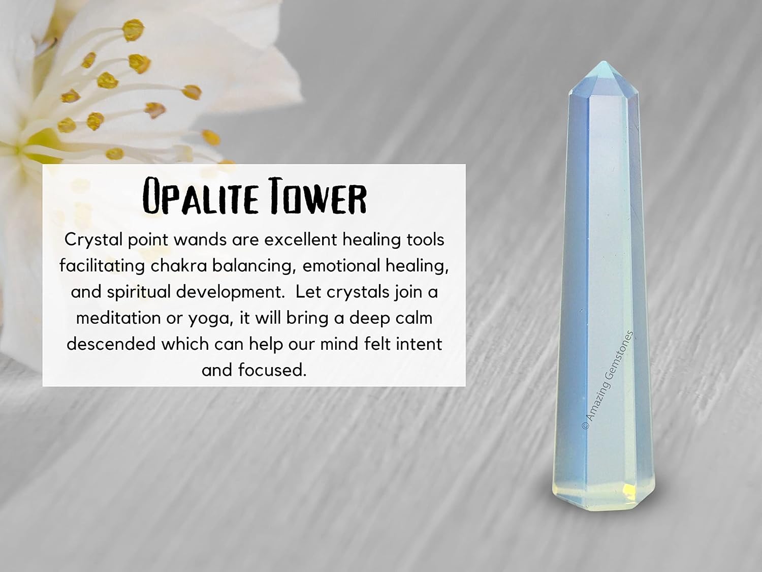 - Opalite Crystal Tower you can place it in any area that needs to be re-energized with strong energy. Length of this tower / wand / obelisk / point is 3" inch to 4" inch (7.5cm to 10cm) & width is 0.75 inch (2 cm).