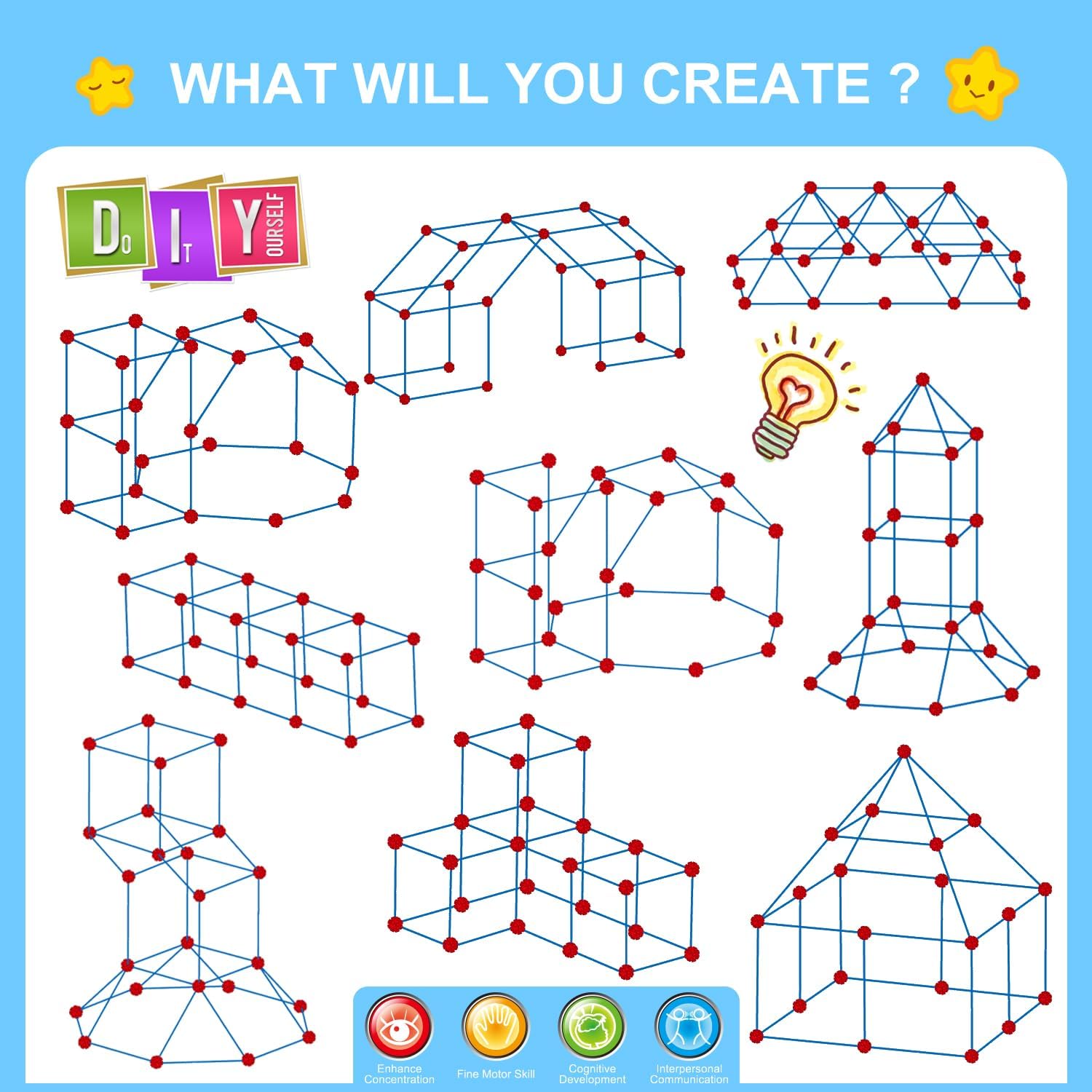 - Ideal STEM Gift: Presented in a vibrant color box, this easily assembled and robust fort building set is an excellent educational gift for kids aged 4 to 12 – suitable for birthdays, holidays, Halloween, Christmas, New Year, or any special occasion. It's a noteworthy reward for young builders who relish creating forts. The kit offers a fantastic indoor activity for rainy or snowy days, making it perfect for family reunions, friend gatherings, and more.