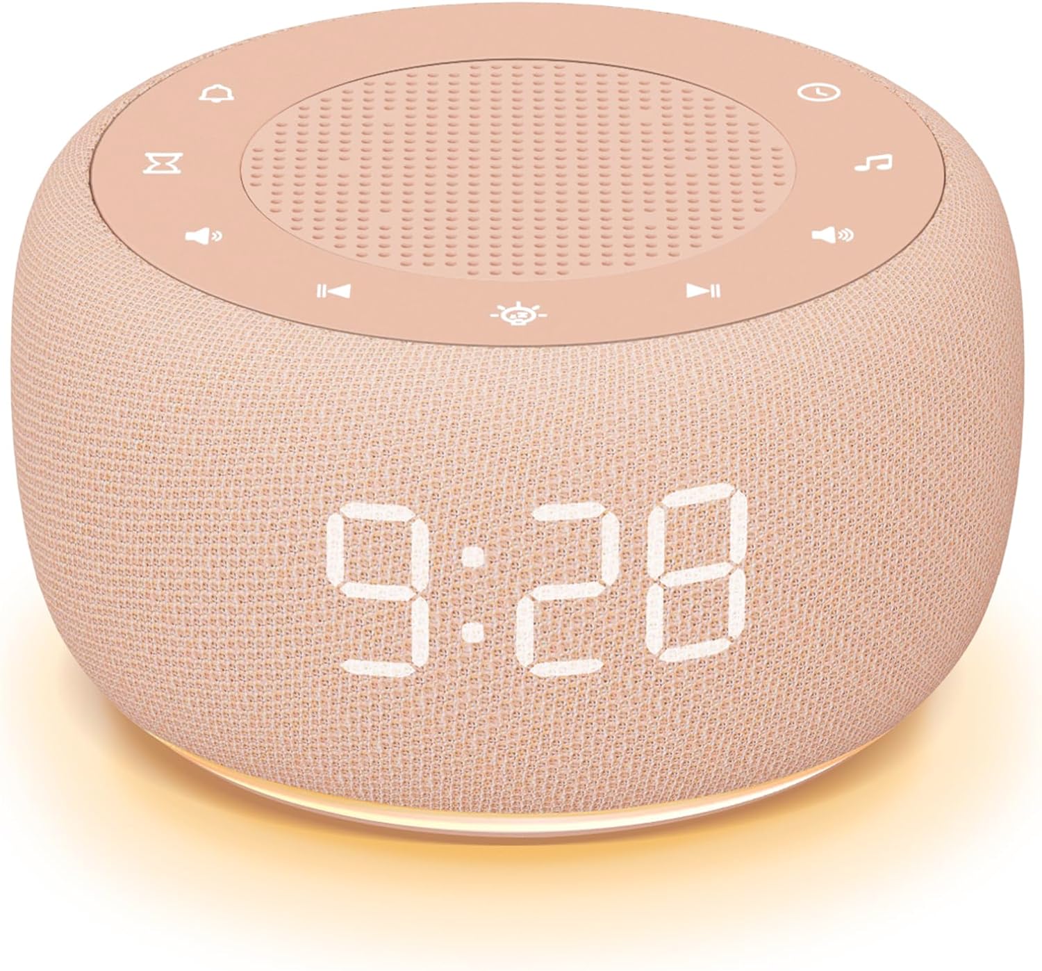 Buffbee Sound Machine & Alarm Clock 2-in-1, 0-100% Clock Face Brightness, Bottom Colored Light, Sleep Timer, Precise 30-Level Volume White Noise Machine, Digital Alarm Clocks for Bedrooms - Peach