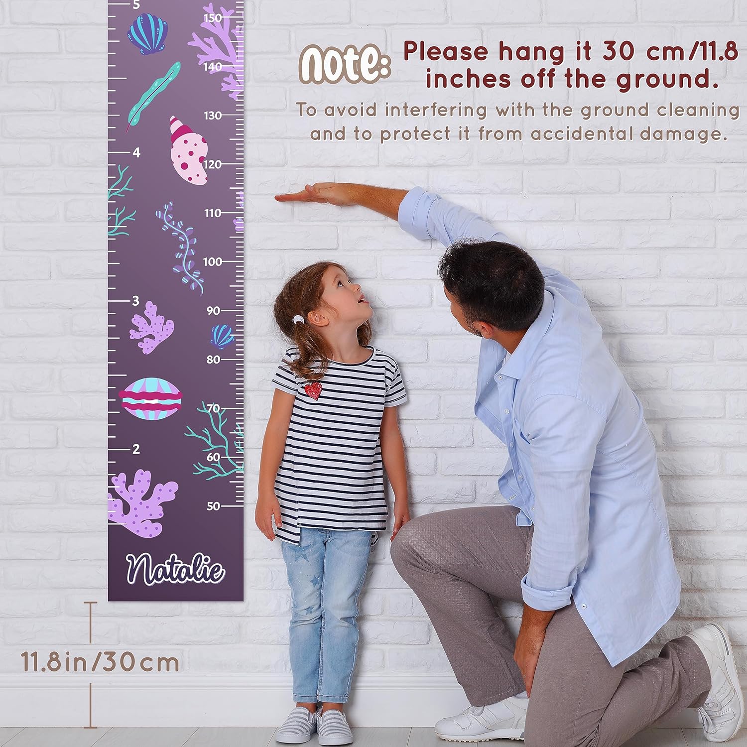 - Easy Installation: The growth chart features two grommets on the top, allowing for easy hanging on walls or doors. Please hang it 11.8"(30cm) off the ground.