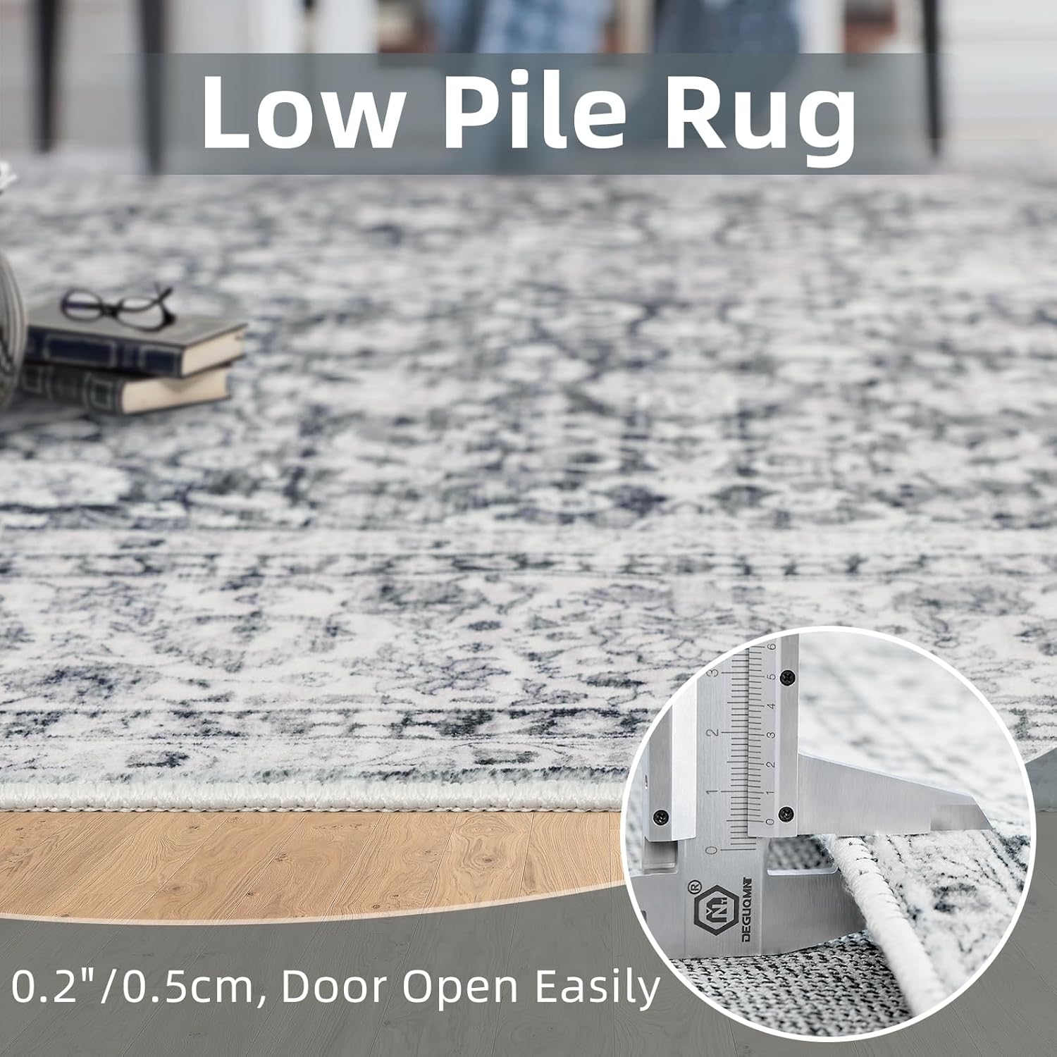 Deerly Area Rug 3x5 Area Rug with Non-Slip Backing, Washable Rugs for Bedroom Living Room Kitchen, Distressed Carpet Printed Low-Pile Soft Dorm Rug Room Decor(Grey)