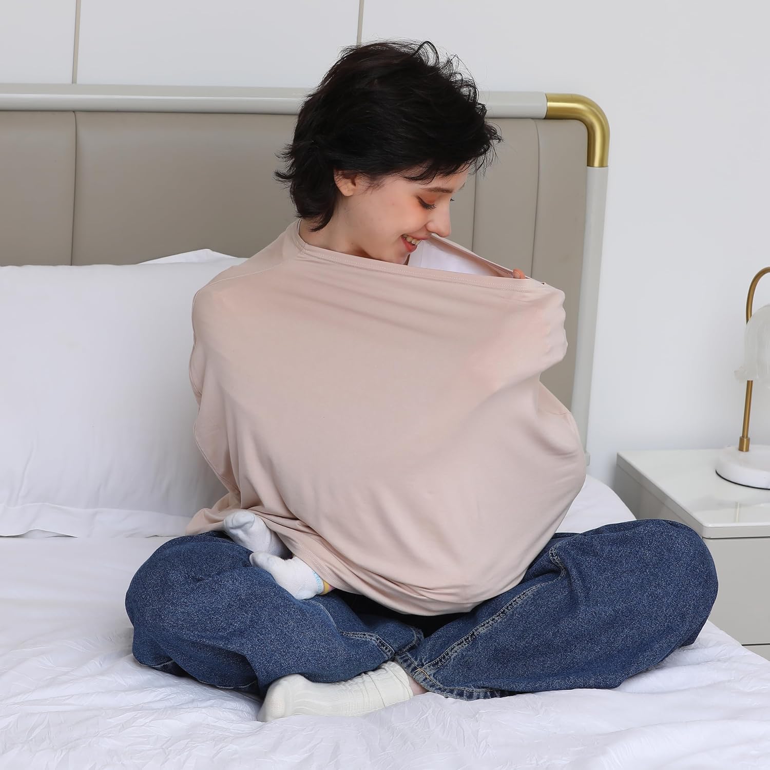 • QUICK INSTALLATION & ACCESS: Our multi-use nursing cover made of stretchy fabric and designed to tubular shape, allows quick installation and access with no need for button.