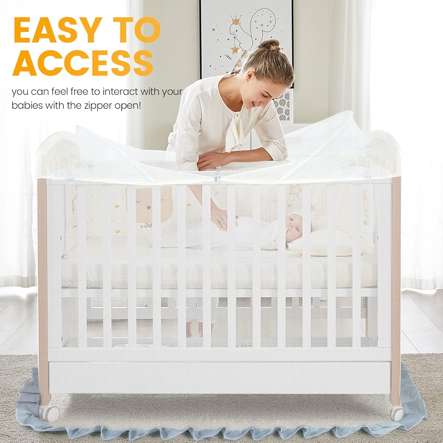 Orzbow Crib Tent Safety Net, Encrypted Crib Mosquito Net to Keep Baby in, Crib Cover with Two-Way Zippers, Durable, Strong, Keep Baby Infant from Climbing Out, Falls and Mosquito Bites, White