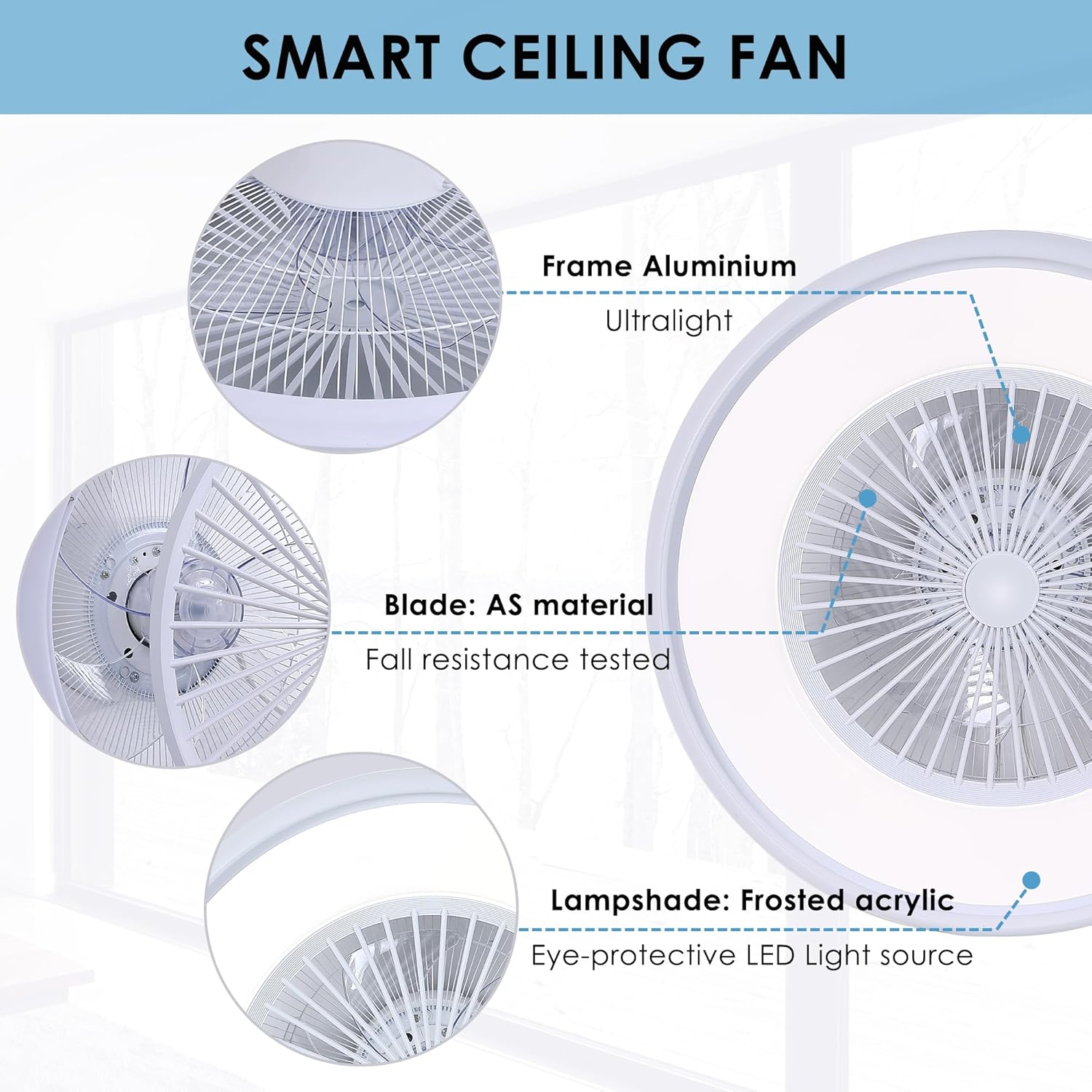 24" Bladeless Ceiling Fan with RGB Light Remote, Smart LED Ceiling Fans with Voice/App Control, Modern Low Profile Dimmable Light Ceiling Fan for Bedroom Living Room