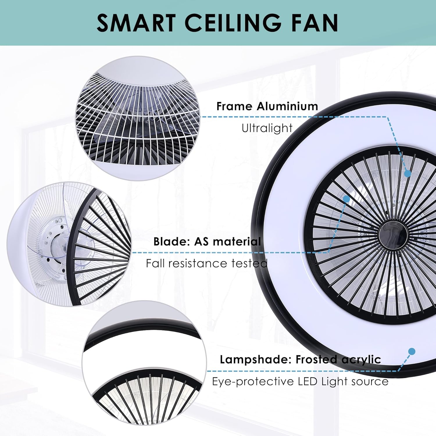 24" Bladeless Ceiling Fan with RGB Light Remote, Smart LED Ceiling Fans with Voice/App Control, Modern Low Profile Dimmable Light Ceiling Fan for Bedroom Living Room