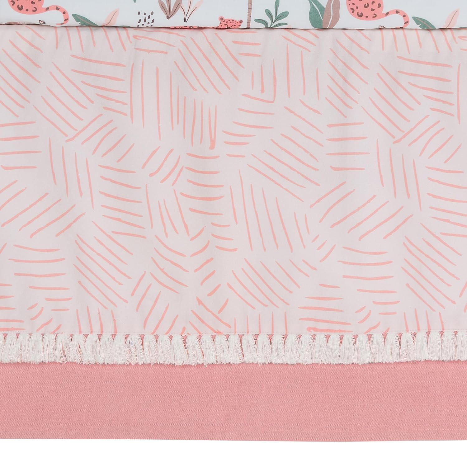 - Decorative fringed crib skirt adds the finishing touch to your childโs crib