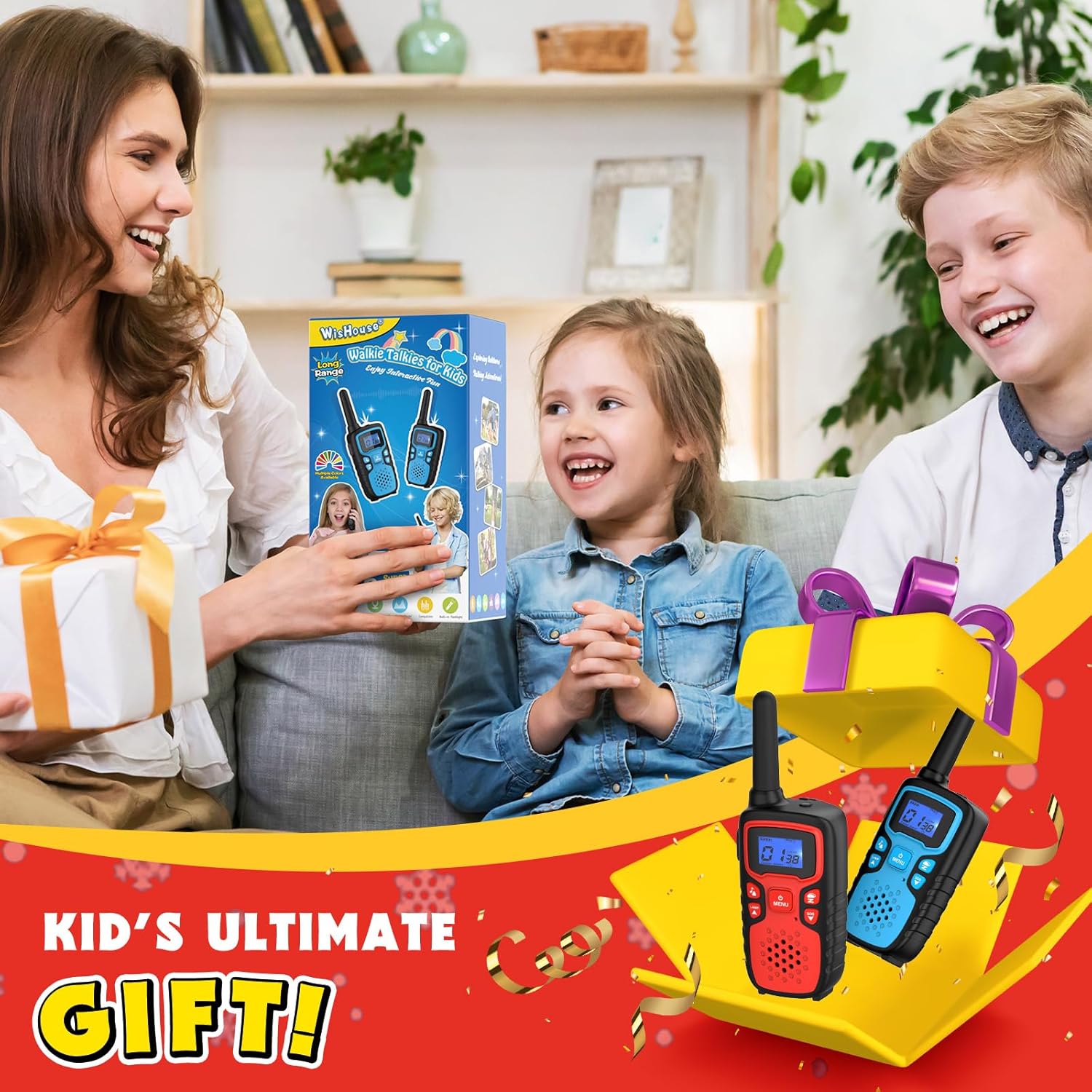 Wishouse Walkie Talkies for Kids Rechargeable Long Range,Xmas Birthday Gift for 4 5 6 7 8 9 Year Old Boys Girls,Hiking Gear Camping Games Cool Toys with NOAA,SOS Siren,Lamp,Lanyards,Easy to Use,2 Pack