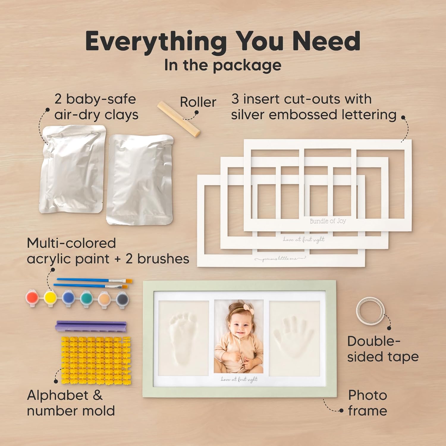 Baby Hand and Footprint Kit - Clay Handprint Keepsake Frame, Newborn Nursery Picture Frame, Personalized New Mom Gifts for Baby Shower & Registry (Sage)
