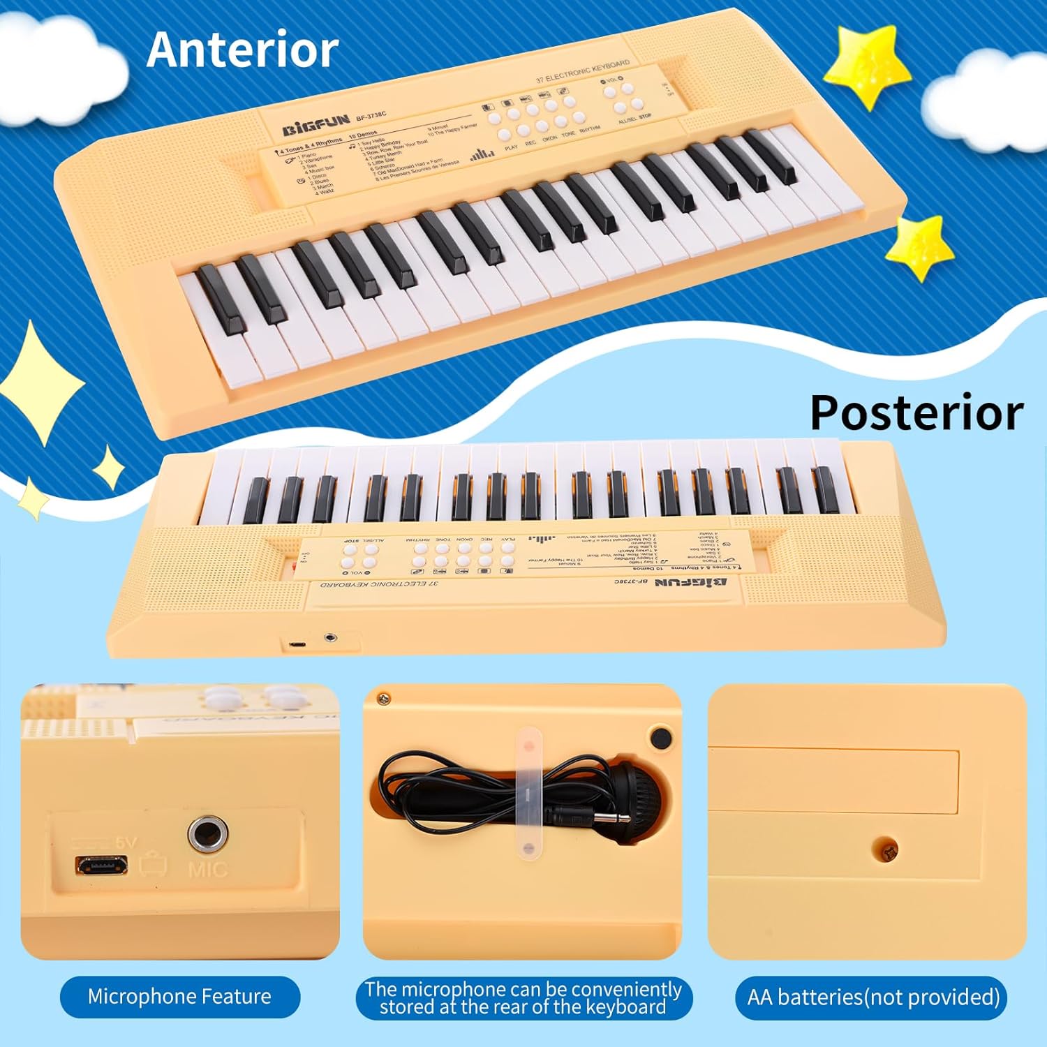 Kids Piano Keyboard, 37 Keys Portable Music Keyboard Early Learning Educational Electronic Music Piano Instrument Toys for 3 4 5 6 Year Old Boys and Girls (Yellow)