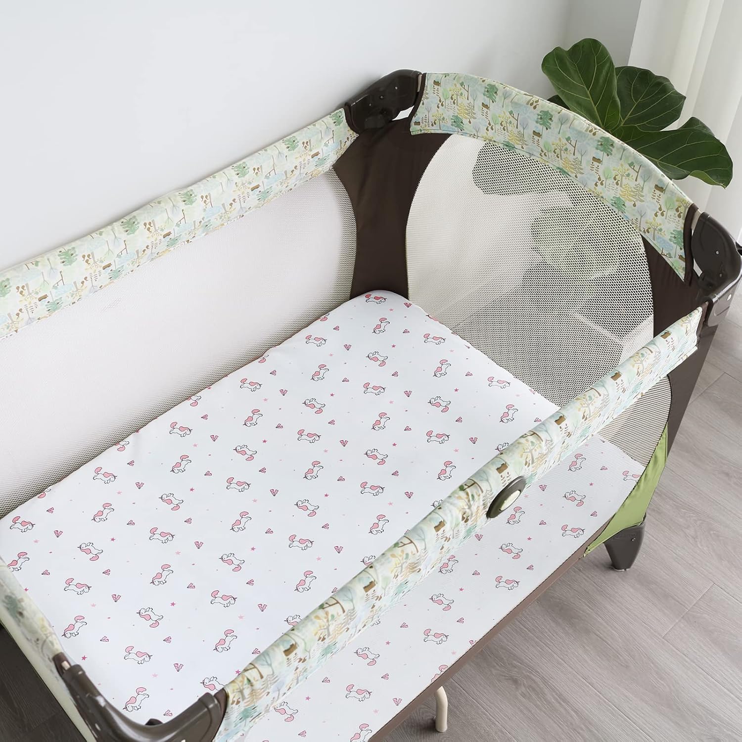 - High Quality: These pack and play sheets are made of ultra soft polyester, woven into a soft and durable fabric. Your baby will be enjoying the soft, smooth and comfortable feeling when sleeps or plays. Also our pack n play sheets are washable and pre-shrinked.