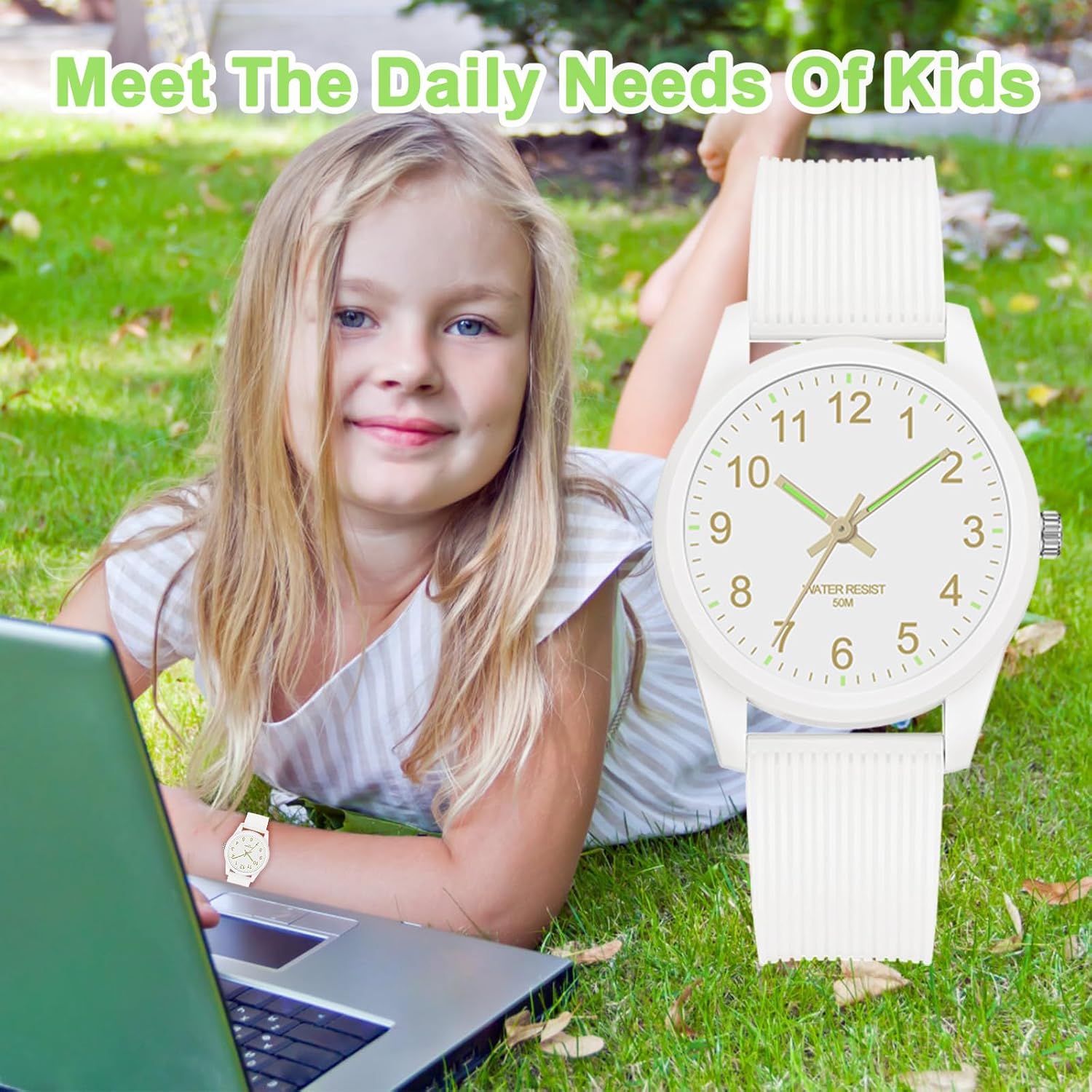 Kids Analog Watches for Girls Boys Watches with Soft Band Learning Time 50M Waterproof Children Watch Easy to Read for Ages 4-12 Kids Gift