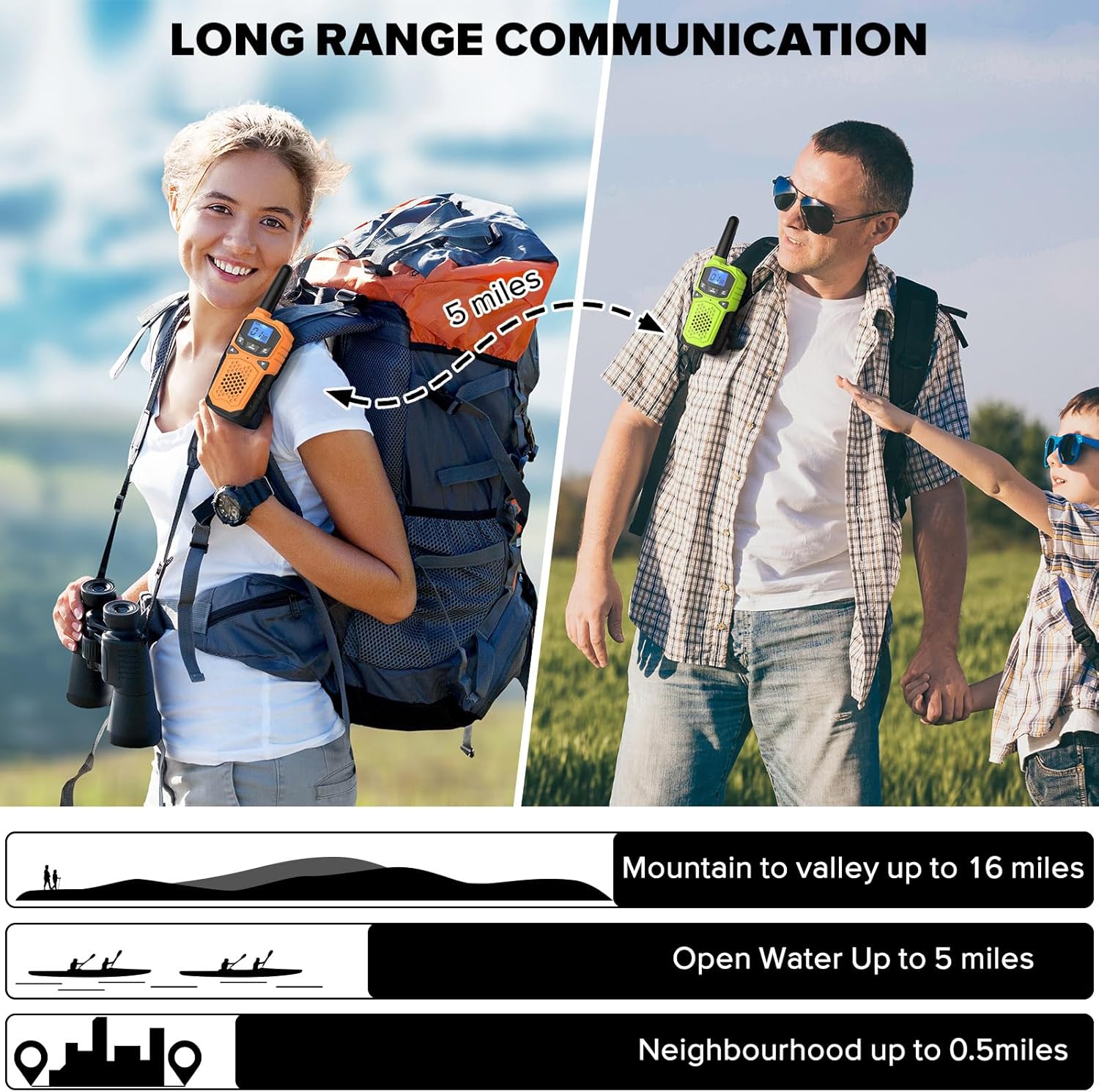 Walkie Talkies for Adults- WokTok Long Range Two Way Radio for Camping Hiking Hand Held Hiking Accessories Camping Gear Xmas Birthday Gift for Kids,SOS Siren,NOAA Weather Alert,4 Radios