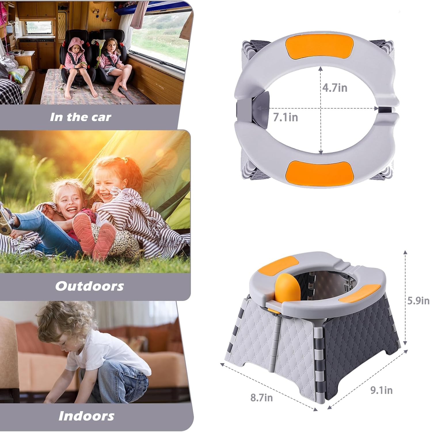 - 【Applicable age stage】 The travel toilet is more suitable for children over 1 year old, with a height that can be unfolded to 5.9 inches and an inner ring of 4.7 inches x 7.1 inches on the upper opening. Therefore, it is suitable for most infants, and for overweight infants, please pay attention to whether the size is appropriate