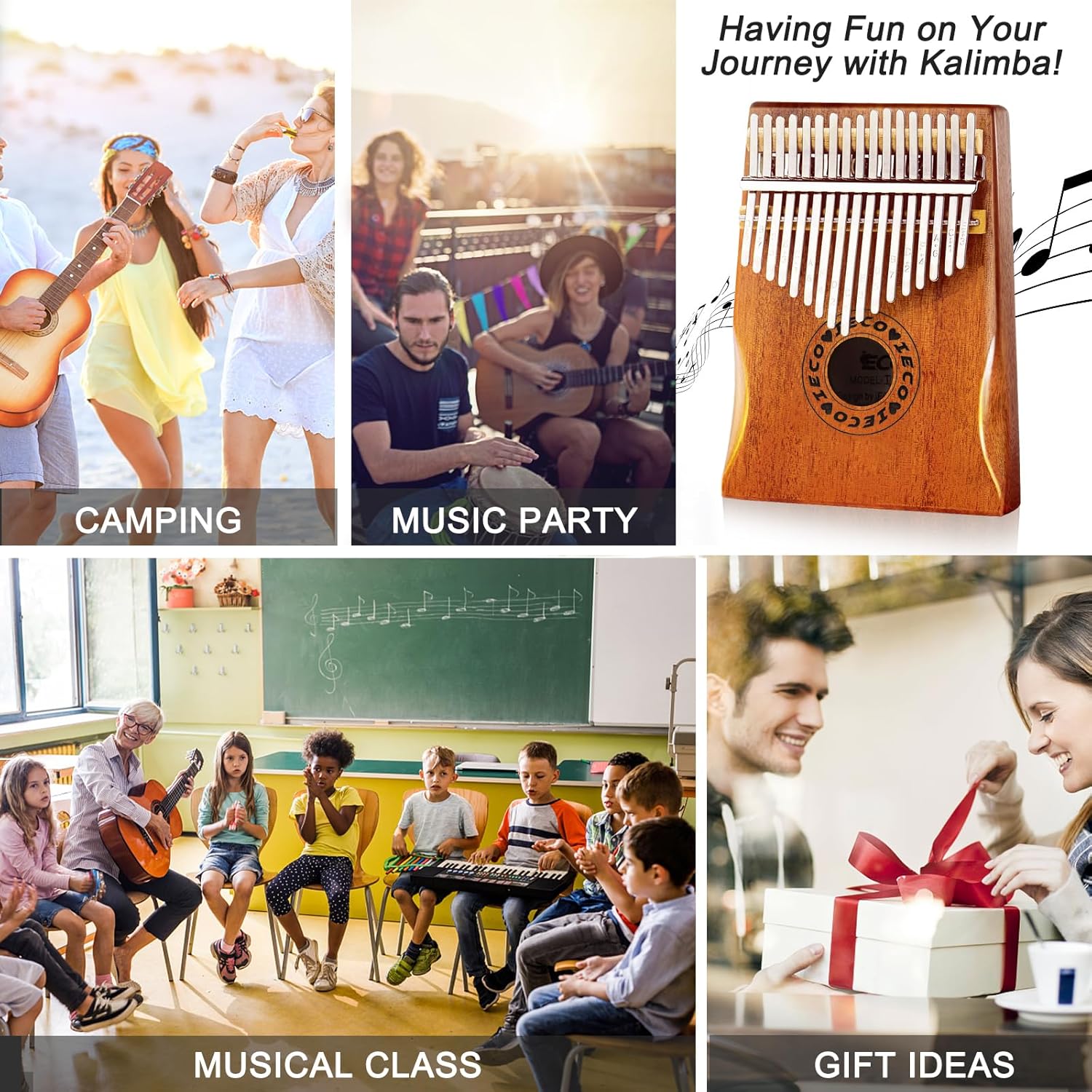 - Ideal Musical Instruments Gift: Come with everything you need: kalimba 17 key, tune hammer, songbook, instruction book, finger protectors, tune stickers, kalimba flannelette bag, and a cleaning cloth. Suitable for beginners, kids, and professionals