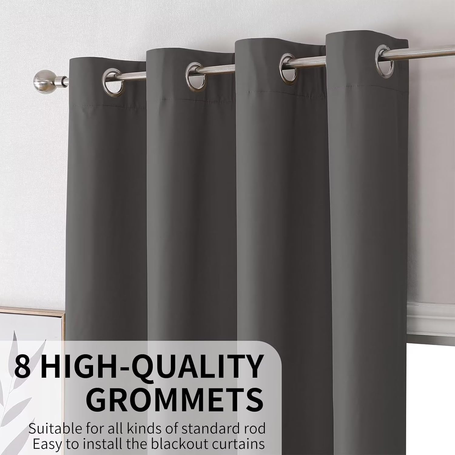 Joydeco Dark Grey Blackout Curtains 120 Inches Long, Extra Long Grey Curtains for Living Room Bedroom, Total Room Darkening Thermal Insulated Solid Drapes for Windows with Grommets