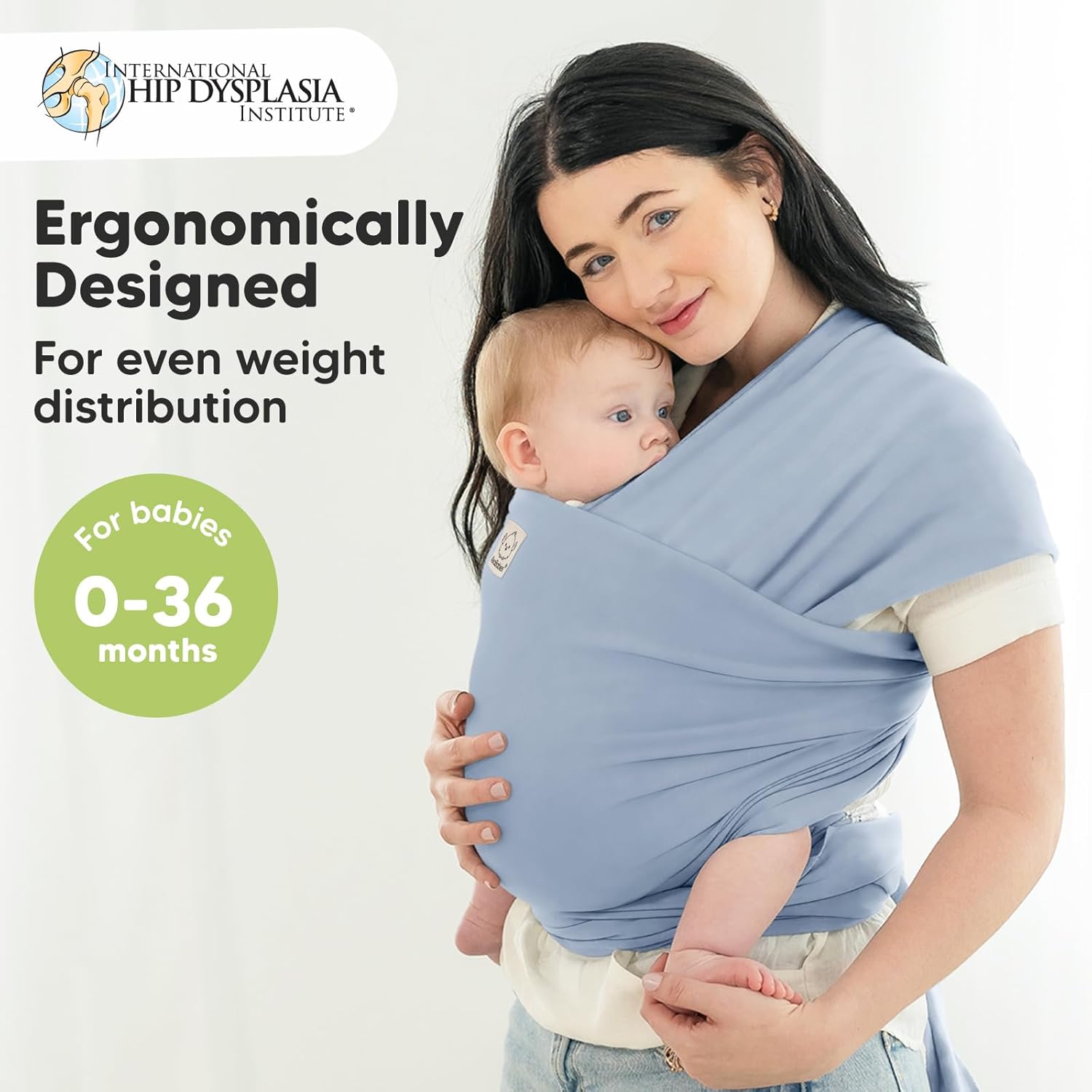 - Ergonomically Designed - KeaBabies Original Baby Wrap Carrier evenly distributes your baby's weight for optimal back and shoulder support. It is certified by the International Hip Dysplasia Institute (IHDI) for promoting babyβs healthy hip development.