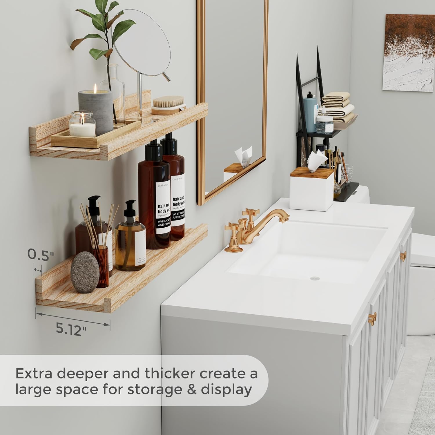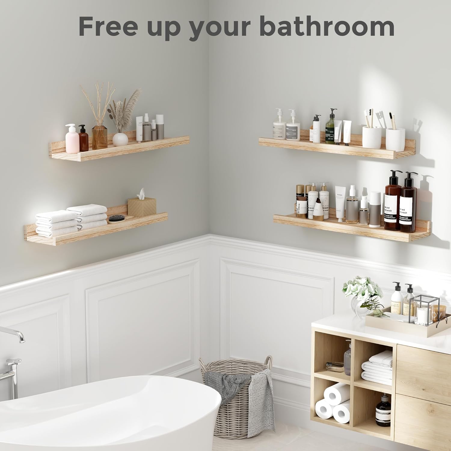 - 【Solid Wood Nursery Shelves】The wall shelves are crafted from Paulownia wood which are lightweight yet proportionately strong, sustainable real wood. The picture ledge wall shelf is SAME SIZE as each other (L 24" x D 5.12" x H 2.2") and is such an easy way to display photos without making lots of holes in your walls. They come fully assembled and all mounting hardware is included in the package.