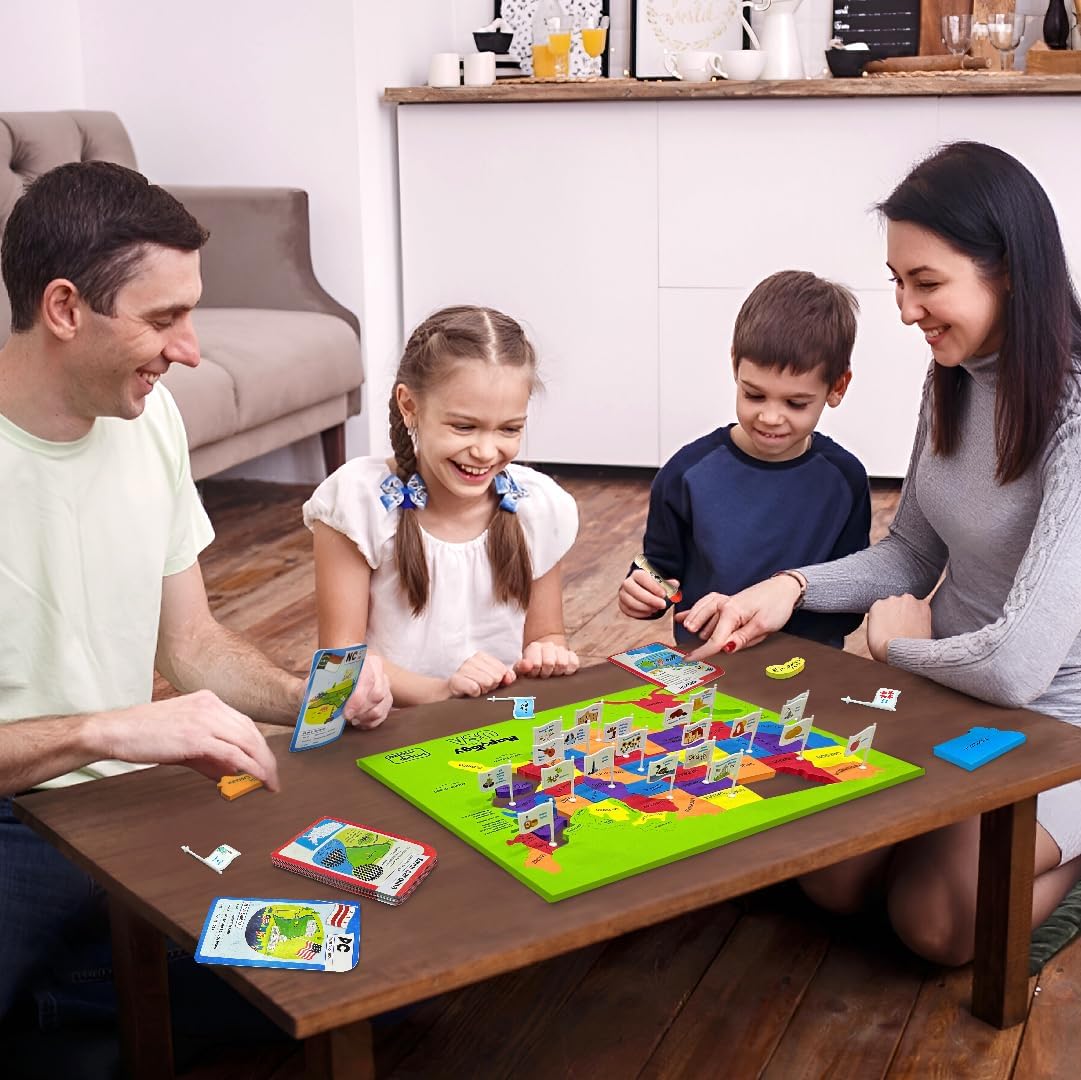 - WHAT YOU GET - An EVA foam frame puzzle featuring 50 precisely cut state-shaped pieces for learning state locations, accompanied by 52 magical Game Cards, including an instructional guide and a dedicated Washington DC card, and 1 Super Swiper, all neatly housed in a portable, travel-friendly box.