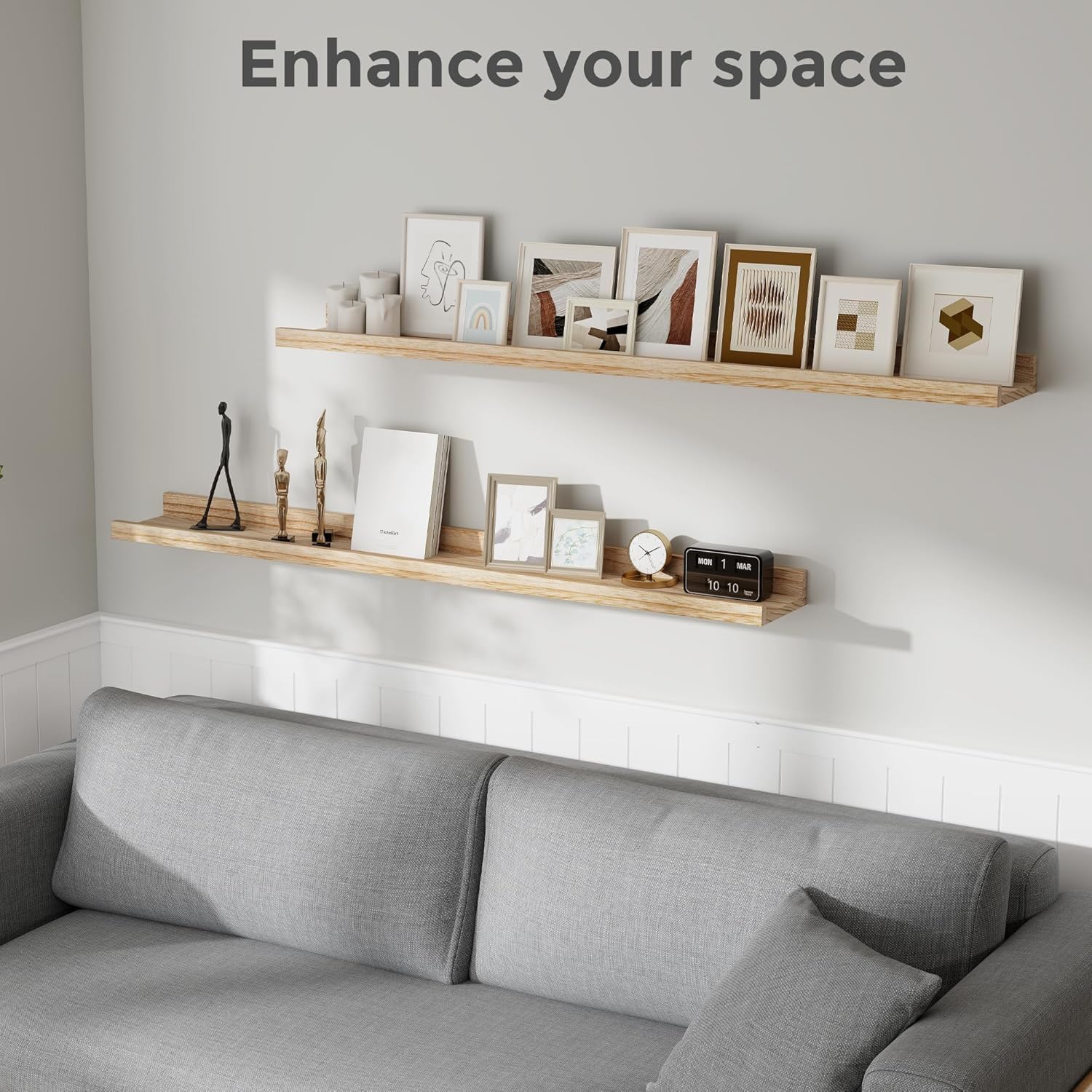 Fun Memories Floating Shelves 48 Inch Long, Rustic Wooden Picture Shelves with Ledge, Long Floating Shelf with Lip for Wall Set of 2, Photo Shelf Nursery Book Shelf for Kids Room, Living Room