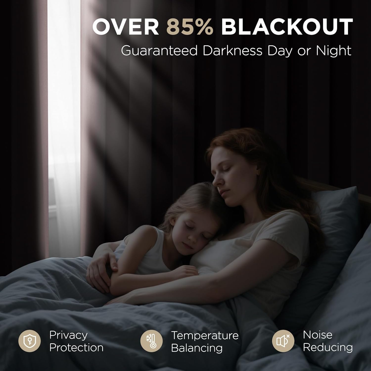 - Superior Blackout & Energy Savings: Black out curtains feature triple-weave technology for professional-grade light blocking. Dark colors curtains block 85%-99% of sunlight; light colors curtains block 65%-80%. Creates ideal darkness for sleep or naps. Thermal insulation helps regulate room temperature, reducing energy costs year-round.