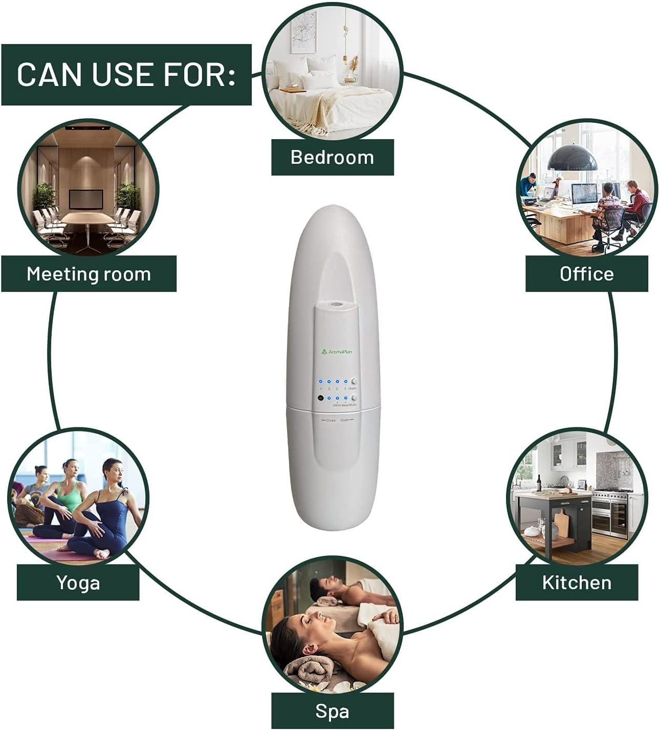 - MESS & NOISE FREE - Unlike other cheap essential oil diffusers that make a mess, leaving oily and wet residue around your room, our waterless scent diffuser is completely mess-free. AromaPlan quiet nebulizer machine allows you to relax and not waste any time cleaning. AromaPlan can also be easily installed on any wall or floor.
