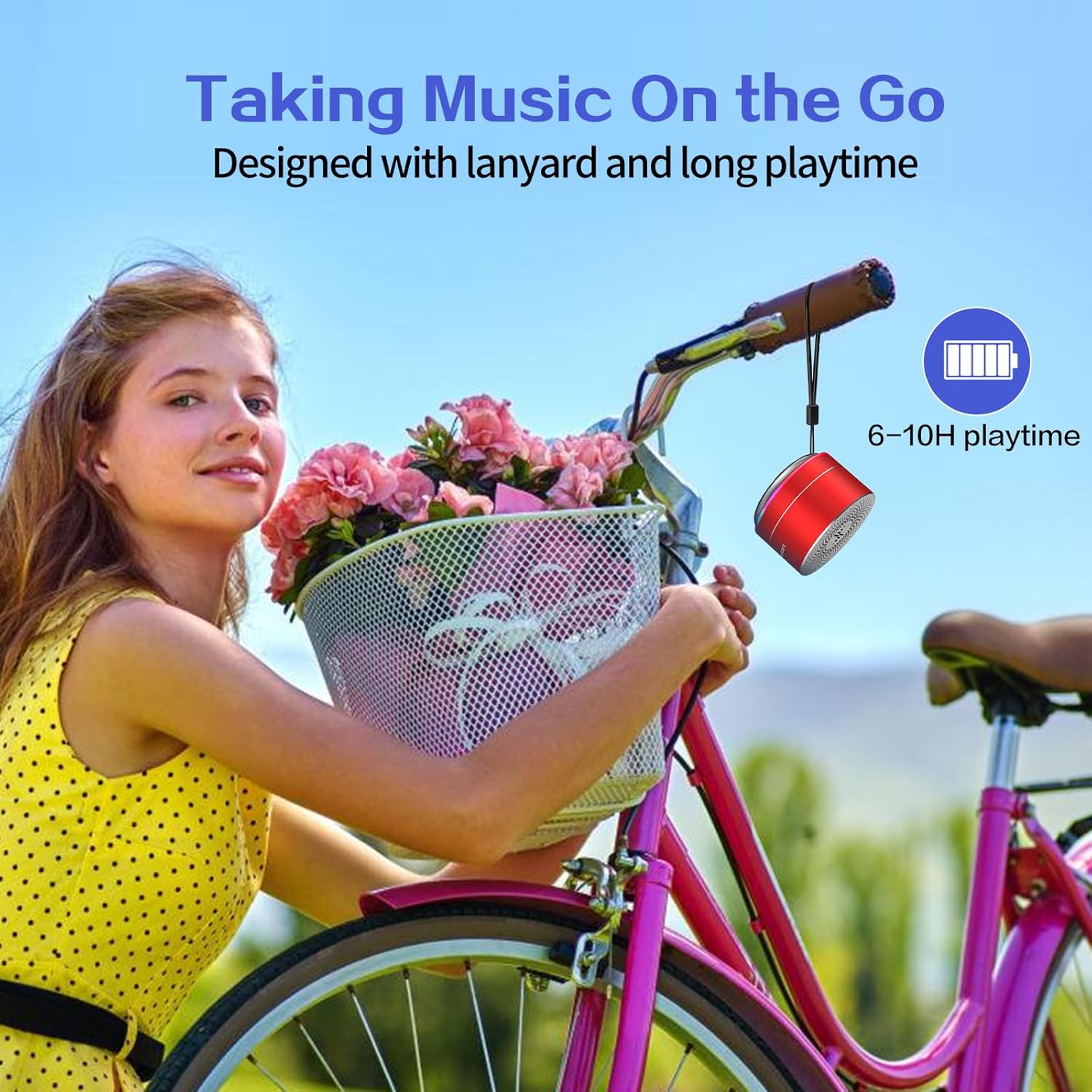 - 【Compact Portable Metal Speaker】This portable speaker is made of Aluminum Alloy with lanyard. Mini,small size and lightweight, You can enjoy music with this pink wireless Bluetooth speaker outdoor,indoor, office, car or bike.